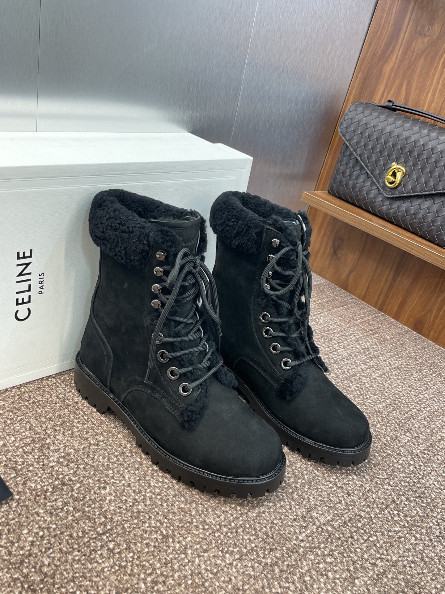 CELINE Ankle Boots Black Suede Lambswool 433387