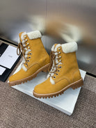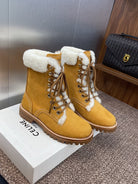 CELINE Ankle Boots Yellow White Suede Lambswool 433388