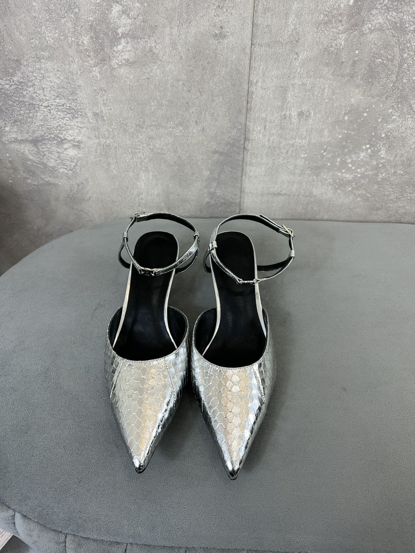cl kitten with strap 45 platinum lizard stamped metalized calfskin