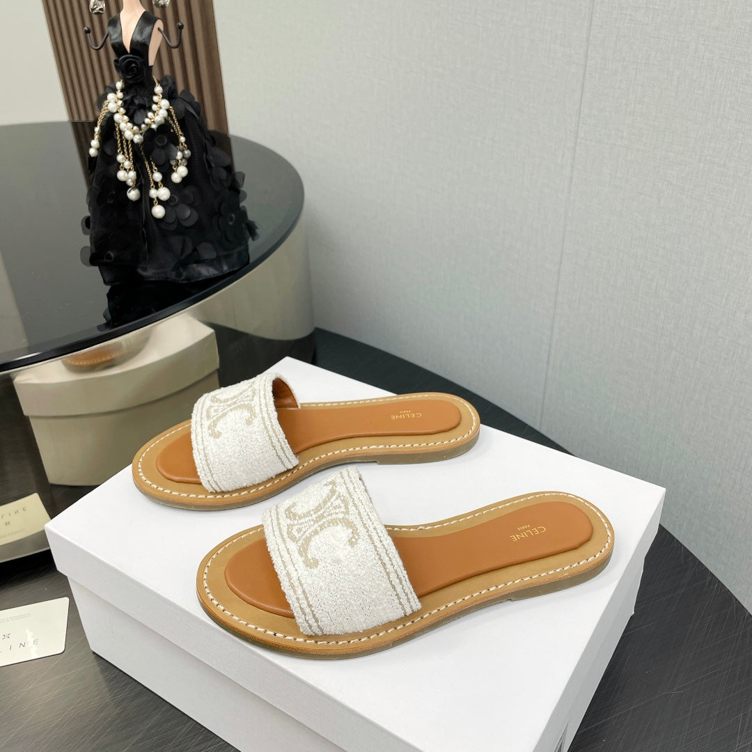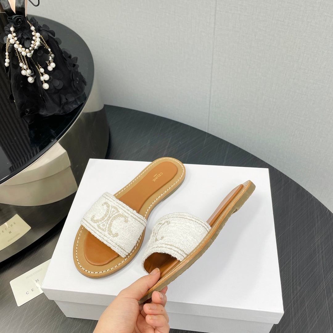 LYMPIA MULE IN TRIOMPHE JACQUARD WOOLLEN FABRIC ECRU