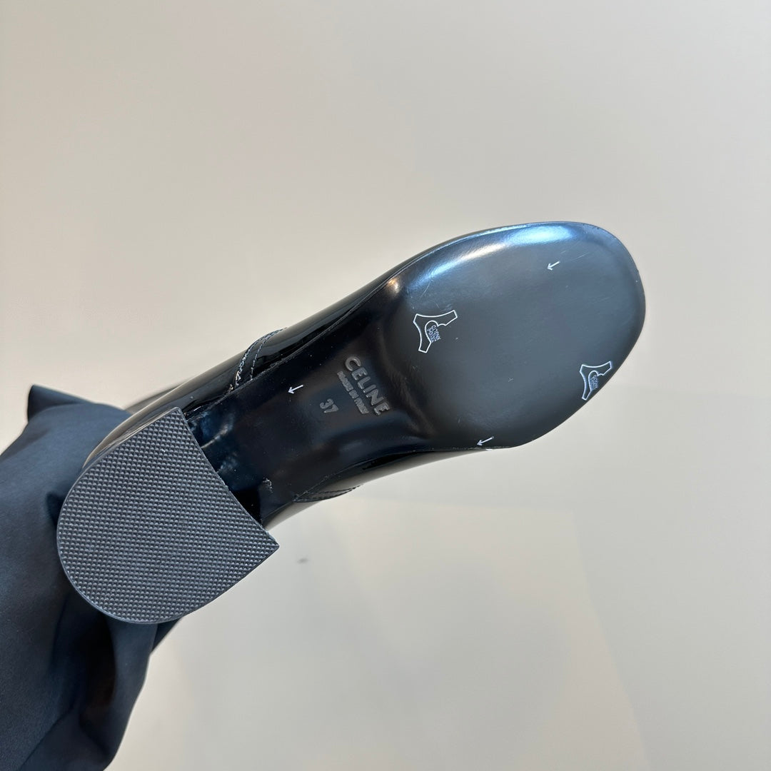 TRIPHOME CHUNKY HEEL BOOTS IN BLACK SHEEPSKIN