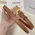 Medium Triomphe Belt 25mm Tan Calfskin White Line Finishing Gold Finishing