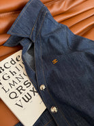 Celine 25 Arc de Triomphe Logo Embroidered Denim Dress Blue Cotton