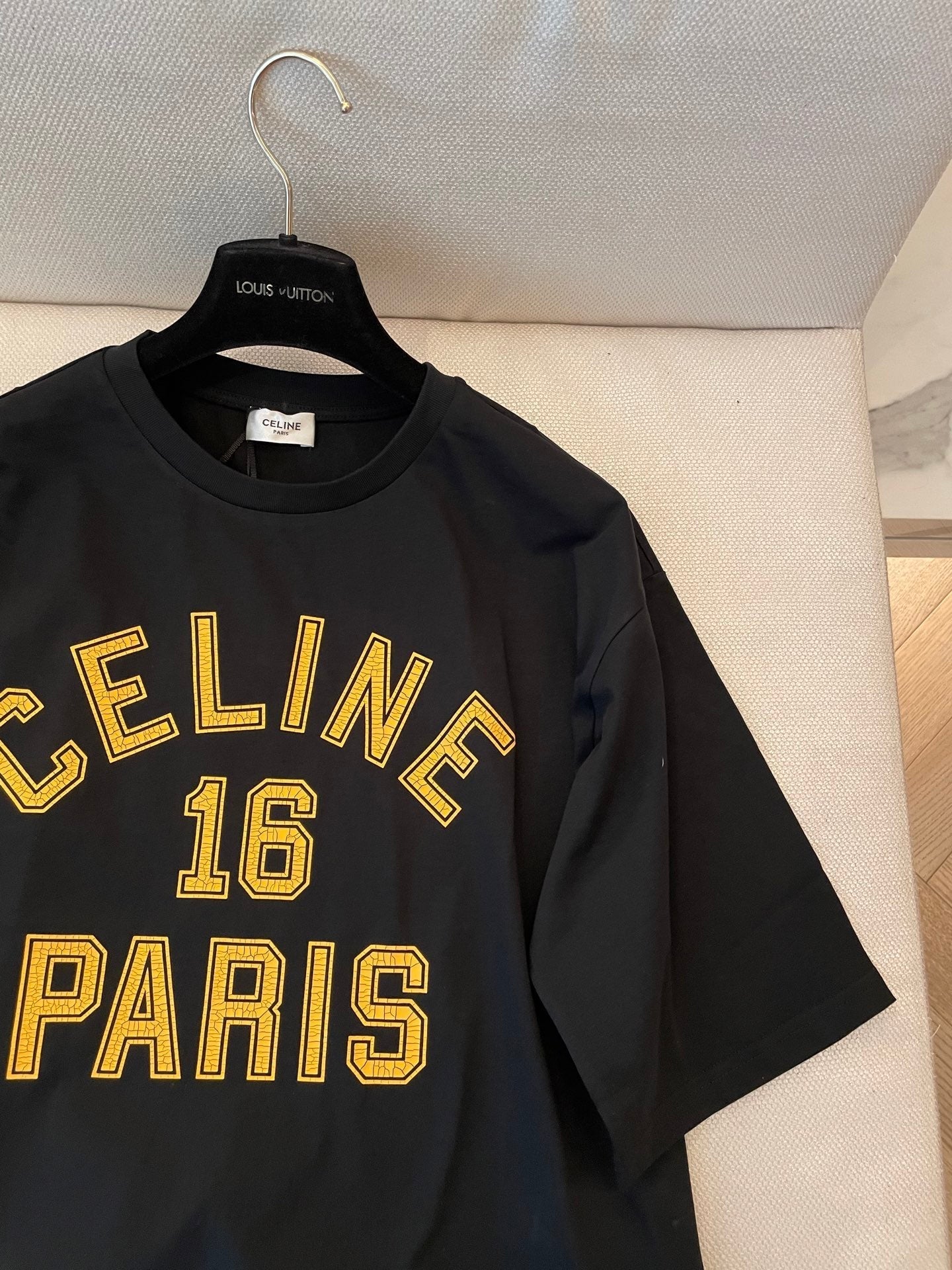 Celine 25 "CELINE 16 PARIS" T-shirt Black mix Yellow Cotton