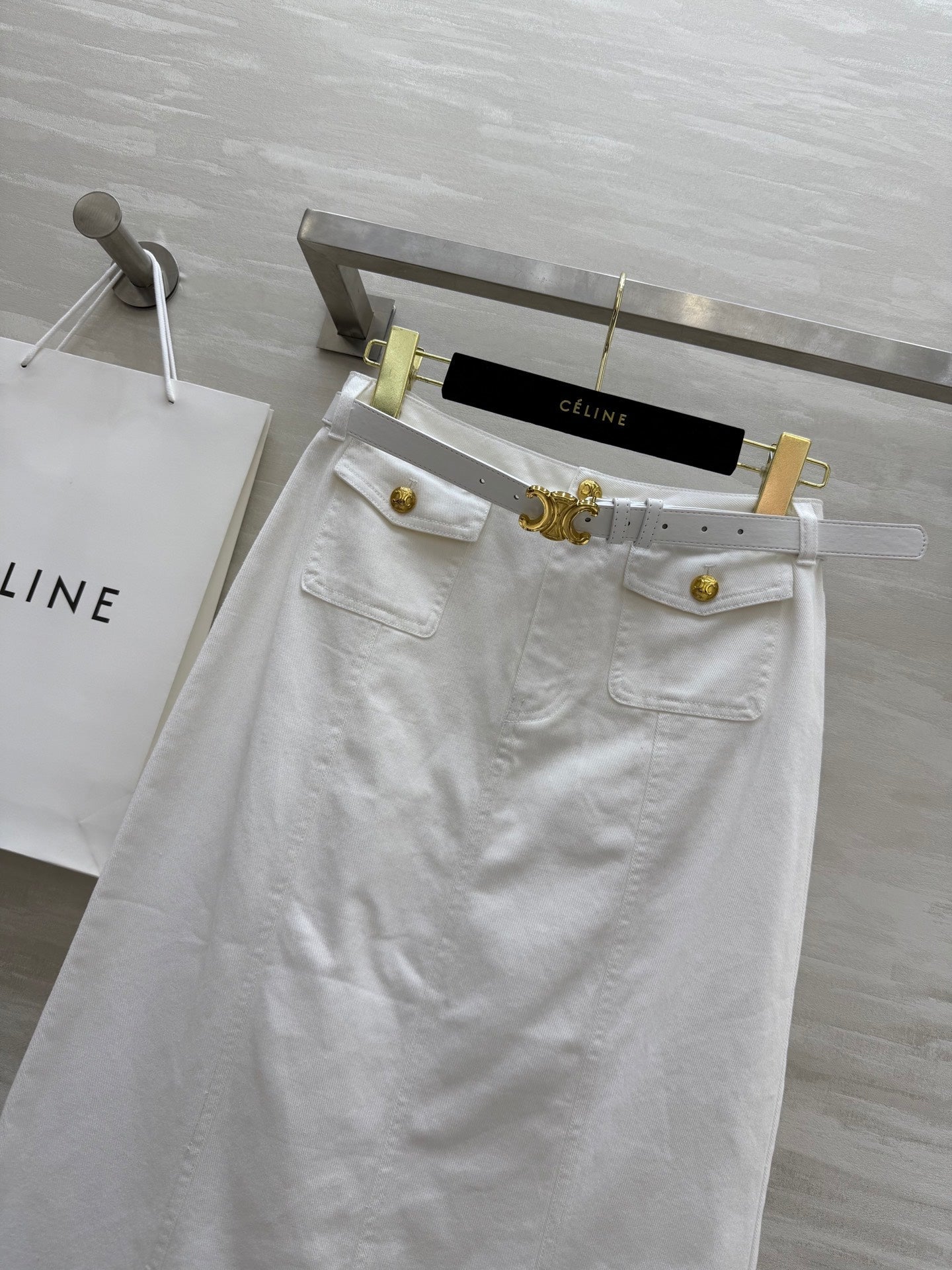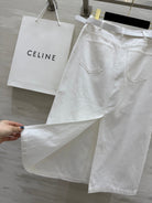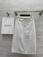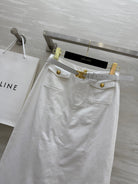 Celine 25 Denim Skirt with Logo Belt White Cotton