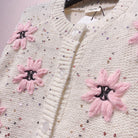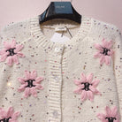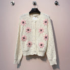 Celine 25 Flower Cardigan Cream Pink Wool