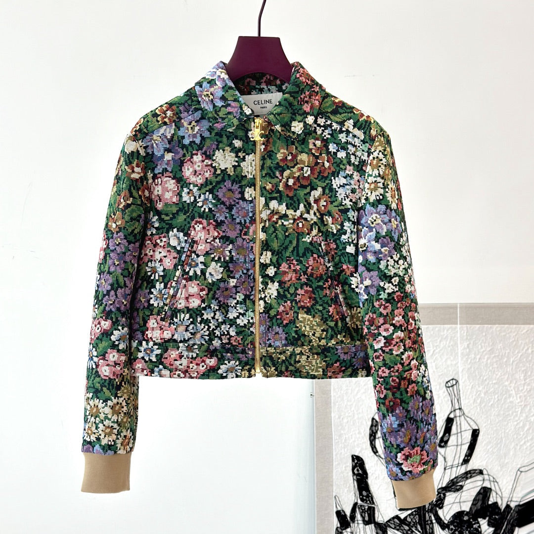 Celine 25 Flower Jacket Green mix colors Cotton