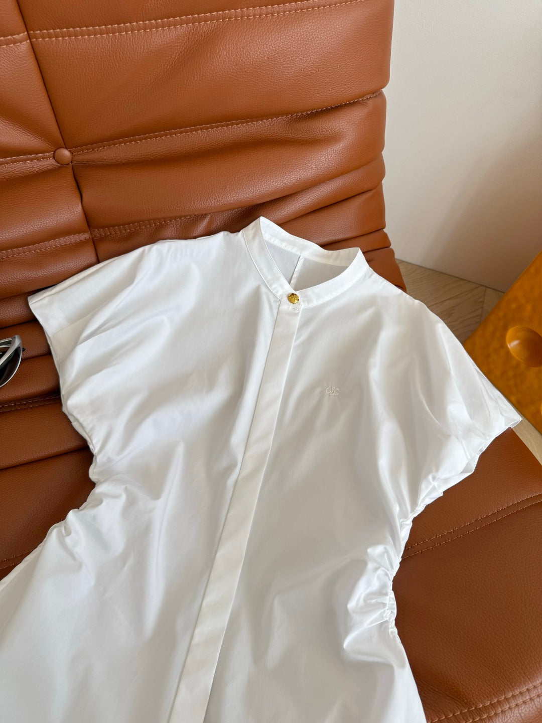 Celine 25 Flying Sleeve Waist Dress White Cotton