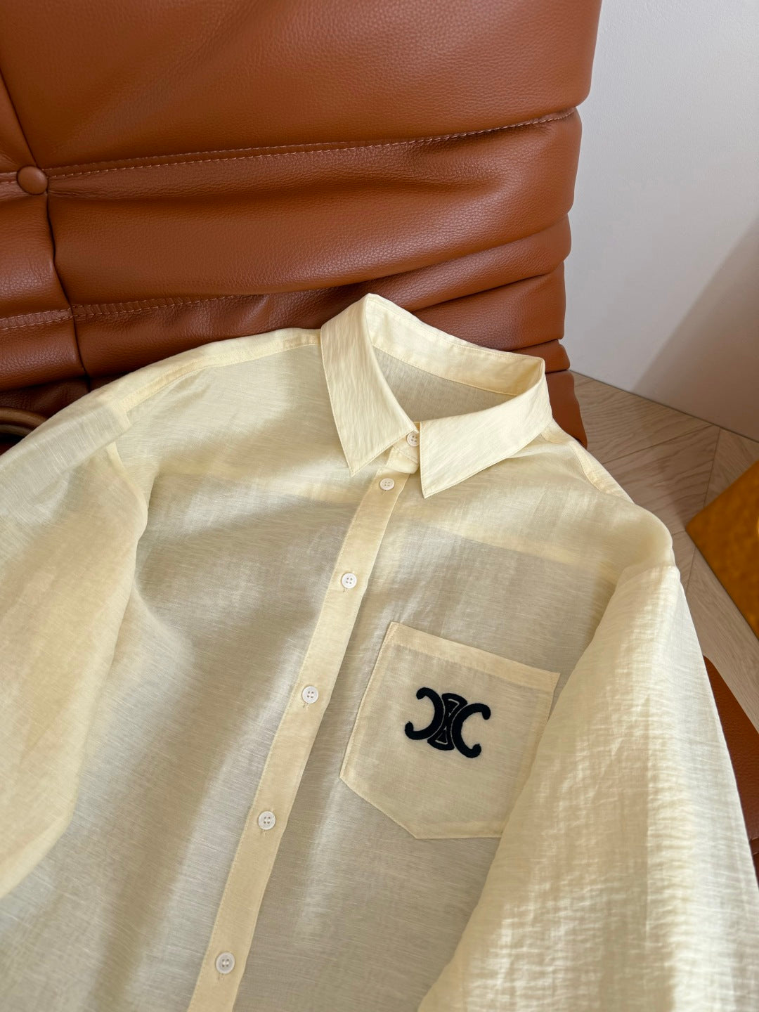 Celine 25 Logo Shirt Yellow and White Cotton