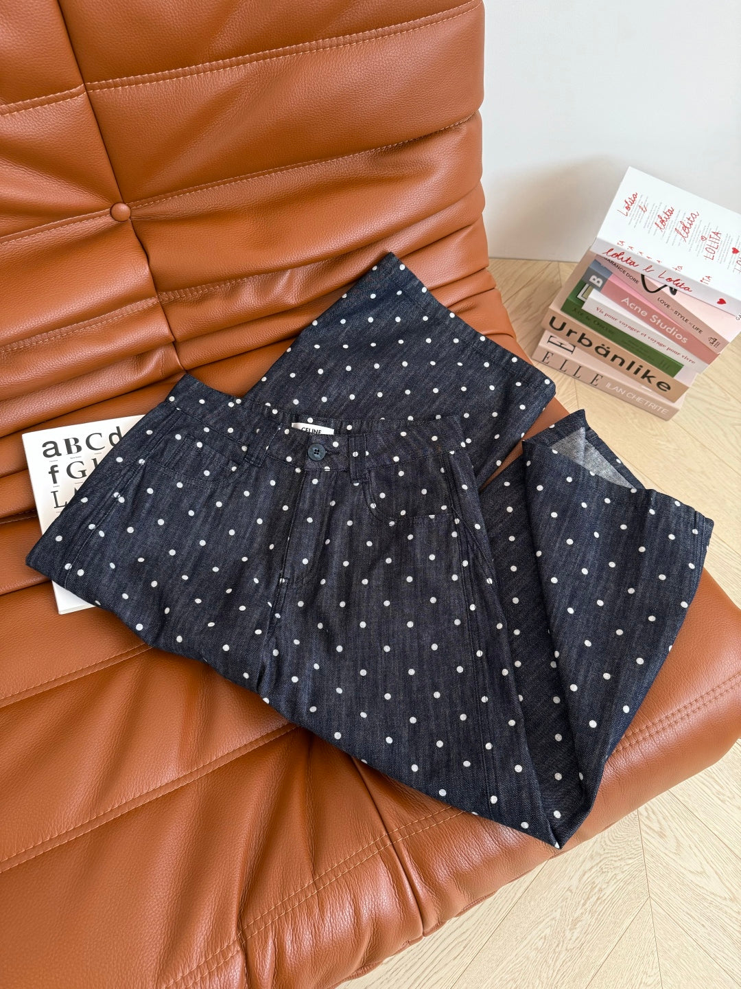 Celine 25 Polka-dot Pants Navy Blue Cotton