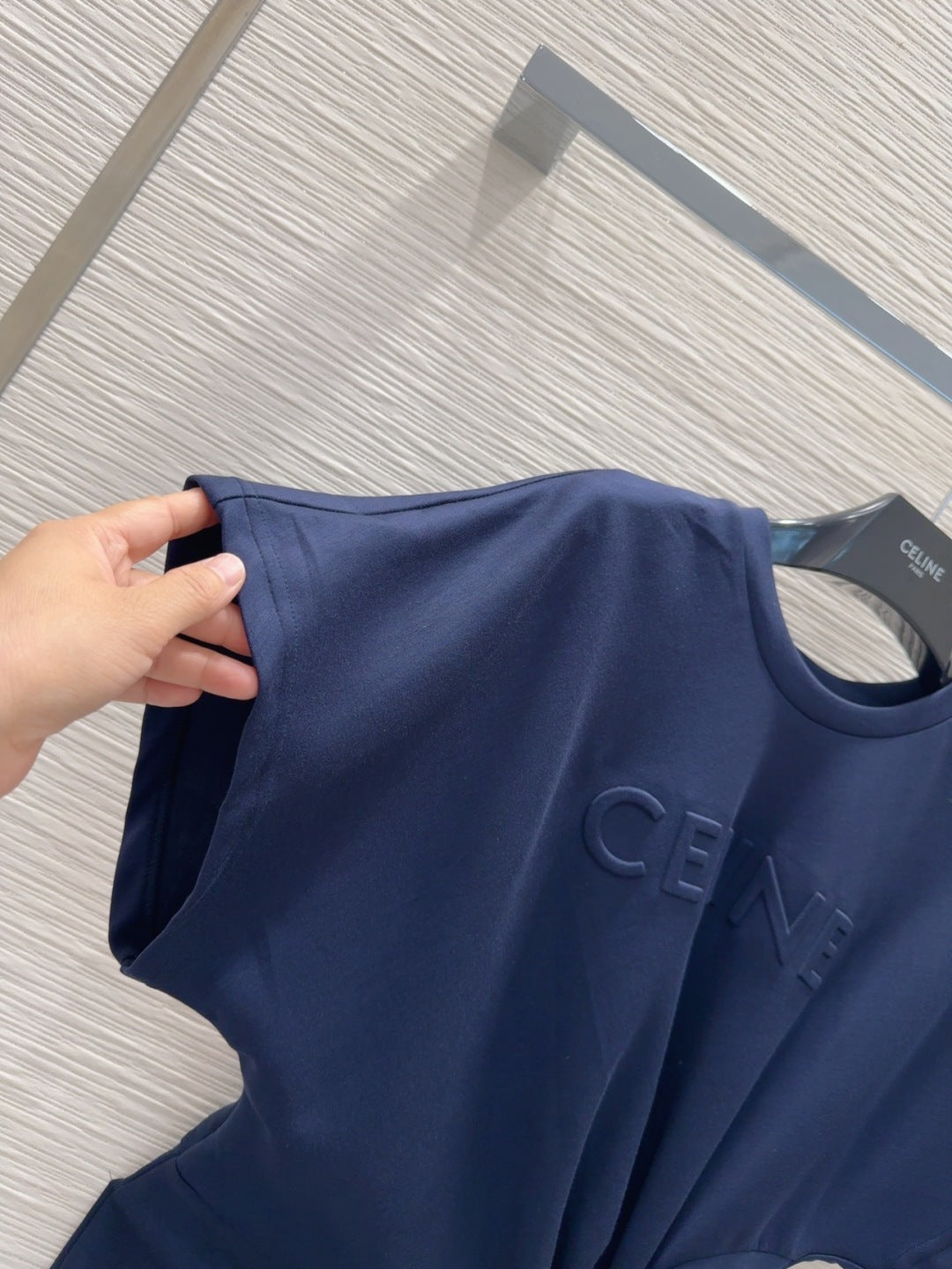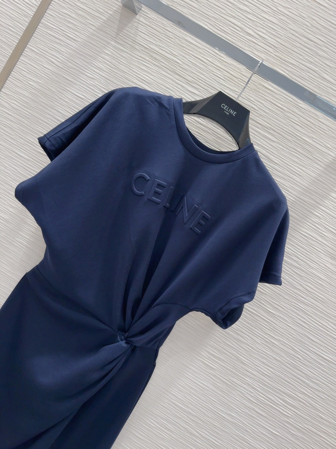 Celine 25 Twisted Waist Dress Navy Blue Cotton