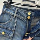 Celine Arc de Triomphe Metal Buckle Denim Shorts Blue Cotton