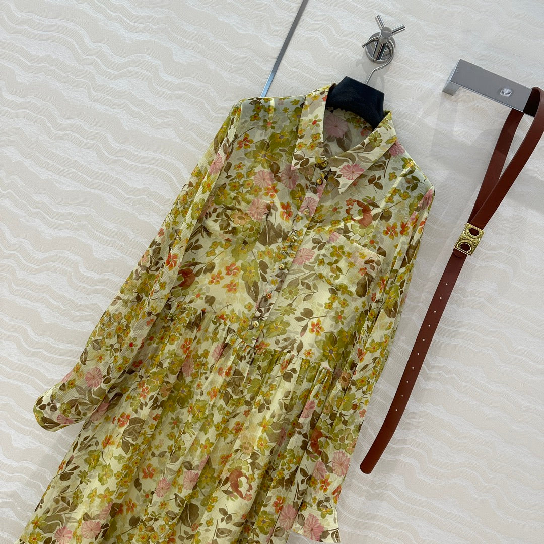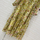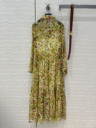 Celine Floral Pattern Dress Green Silk