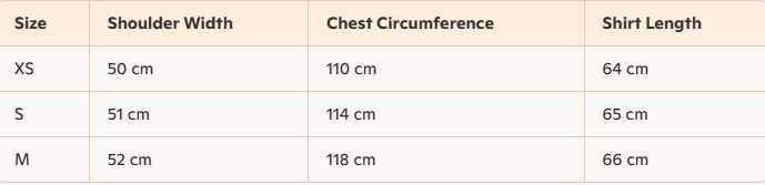 - Size : XS,S,M