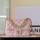 cc 24p mini flap bag 17cm pearlescent pink lambskin pearl chain