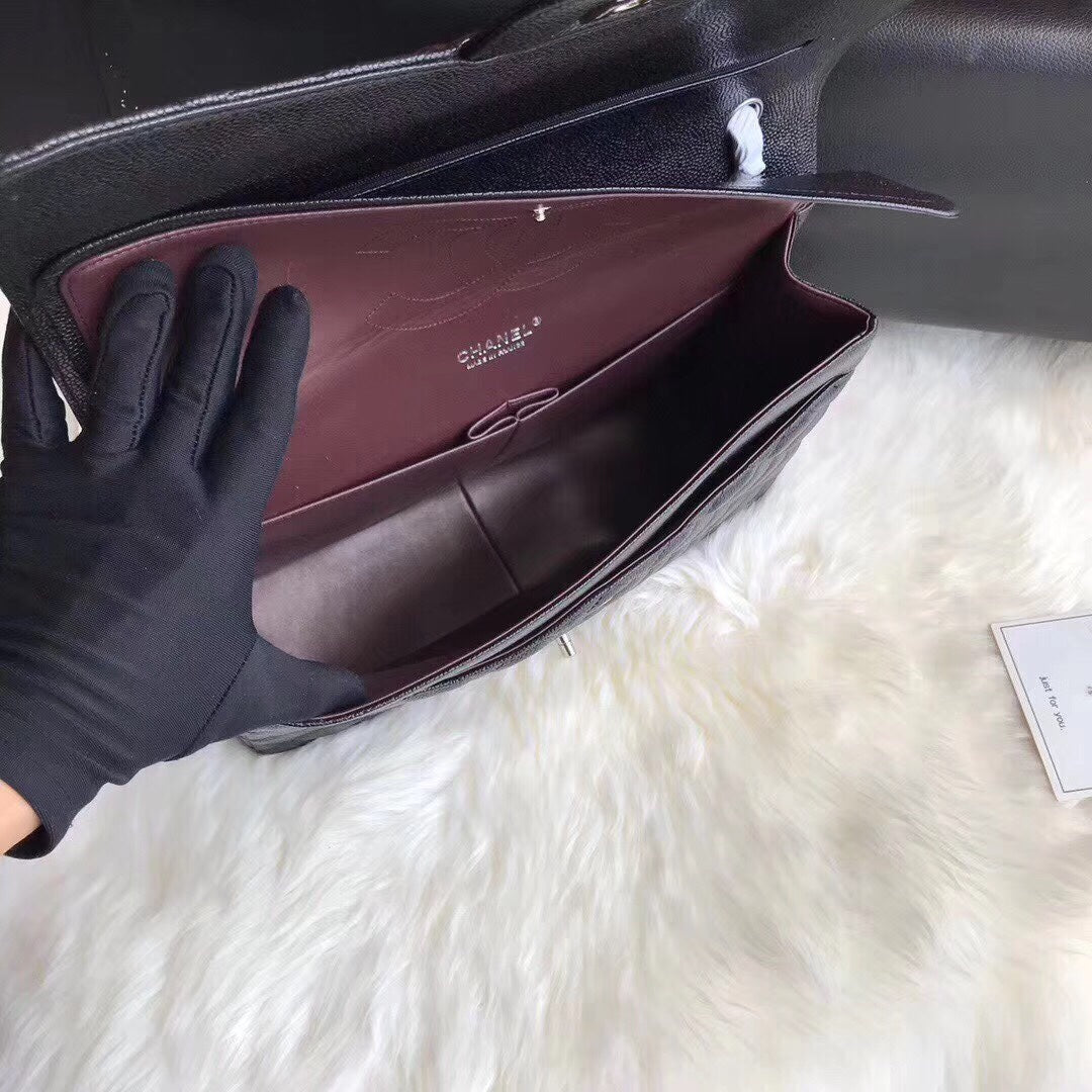 FLAP BAG 33CM BLACK CAVIAR SILVER HARDWARE