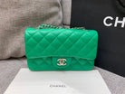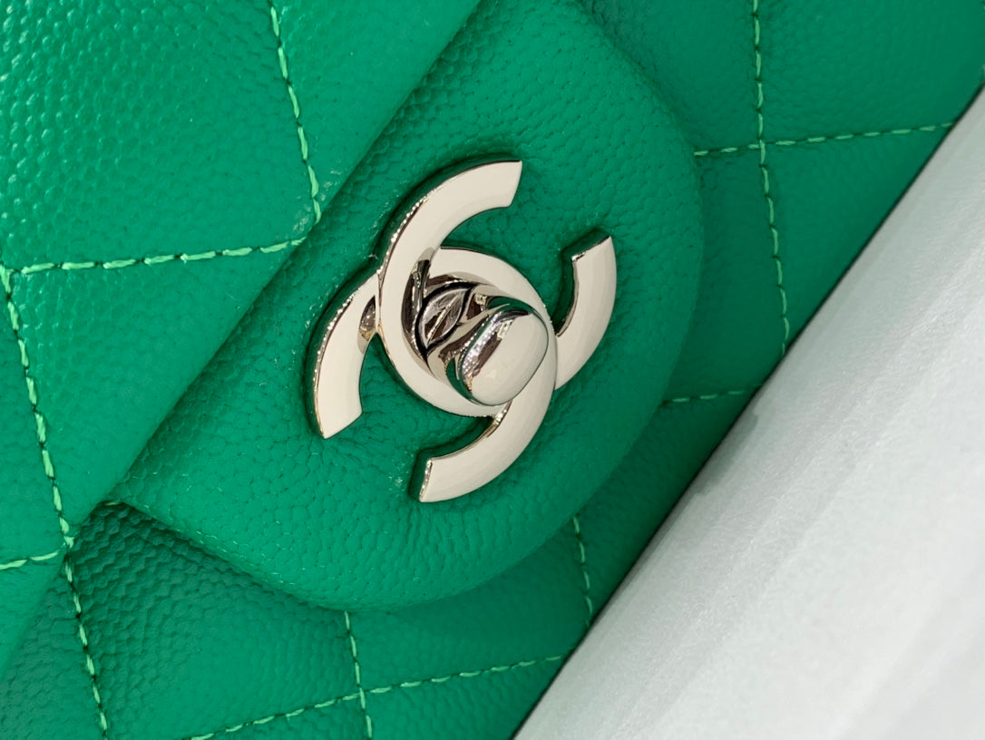 flap bag mini 20cm dark green caviar silver hardware
