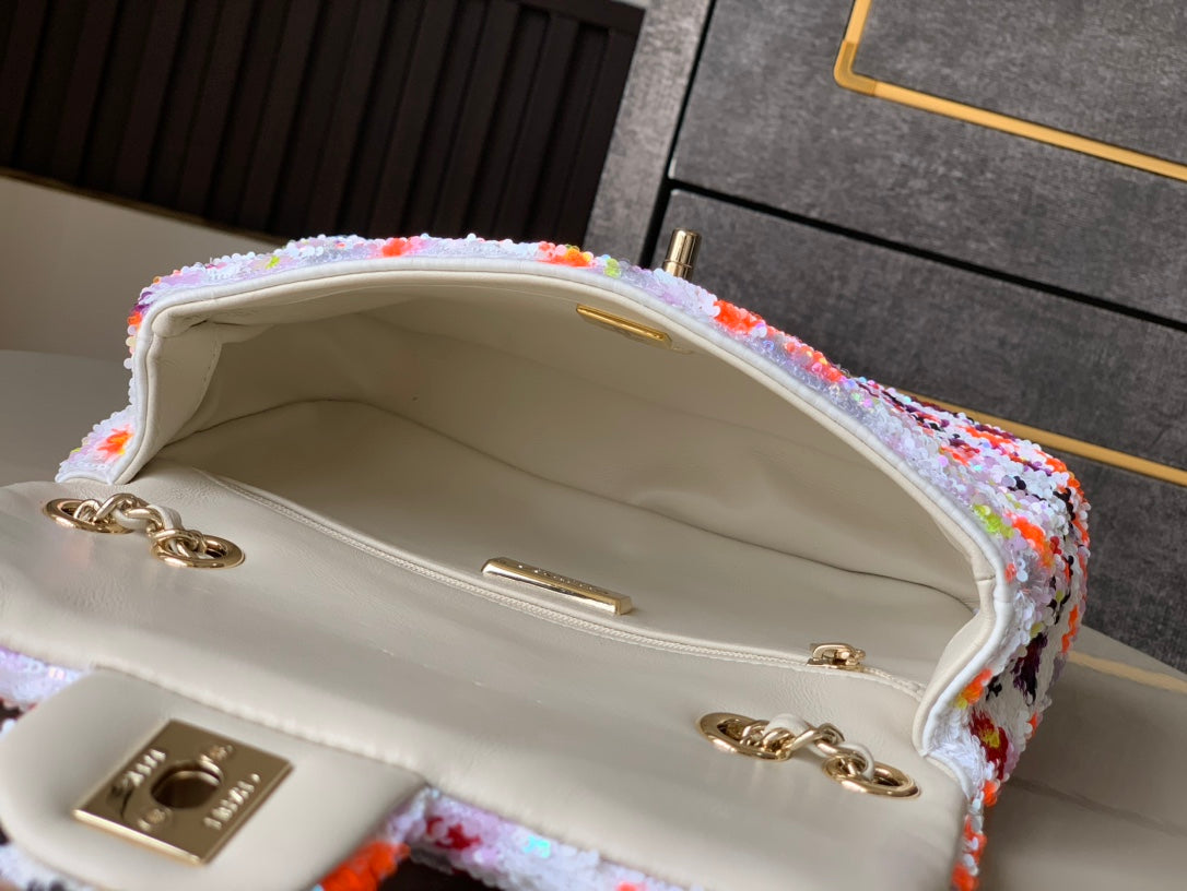 Flap Bag Mini 20cm White Orange Sequin