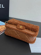 Flap Bag Small 23cm Brown Sherling Lambskin Gold Hardware