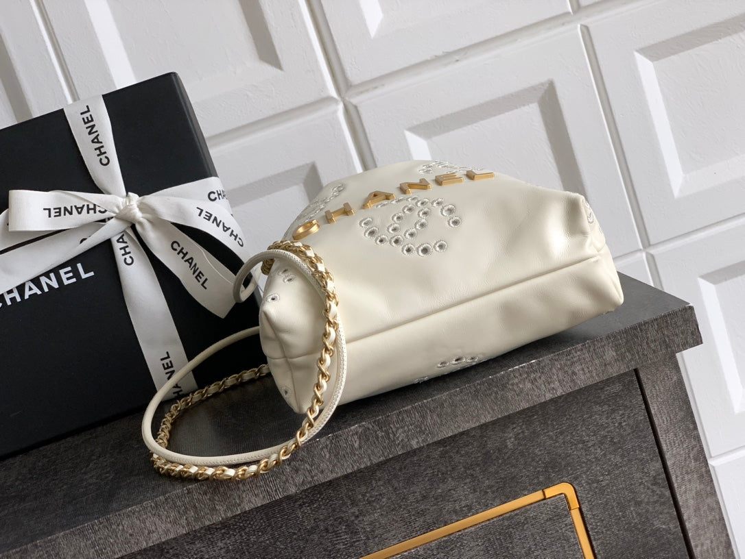 CC 25S Hobo Bag 18.5cm Cream Calfskin Gold Hardware