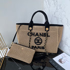 CC 25 Deauville Tote Bag 34cm Beige Black Crochet Suede