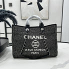 CC Deauville Tweed Bag Black Leather Silver Hardware 14