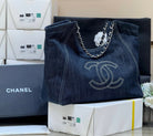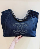 CC Vintage Cabas Tote 48cm Blue Denim