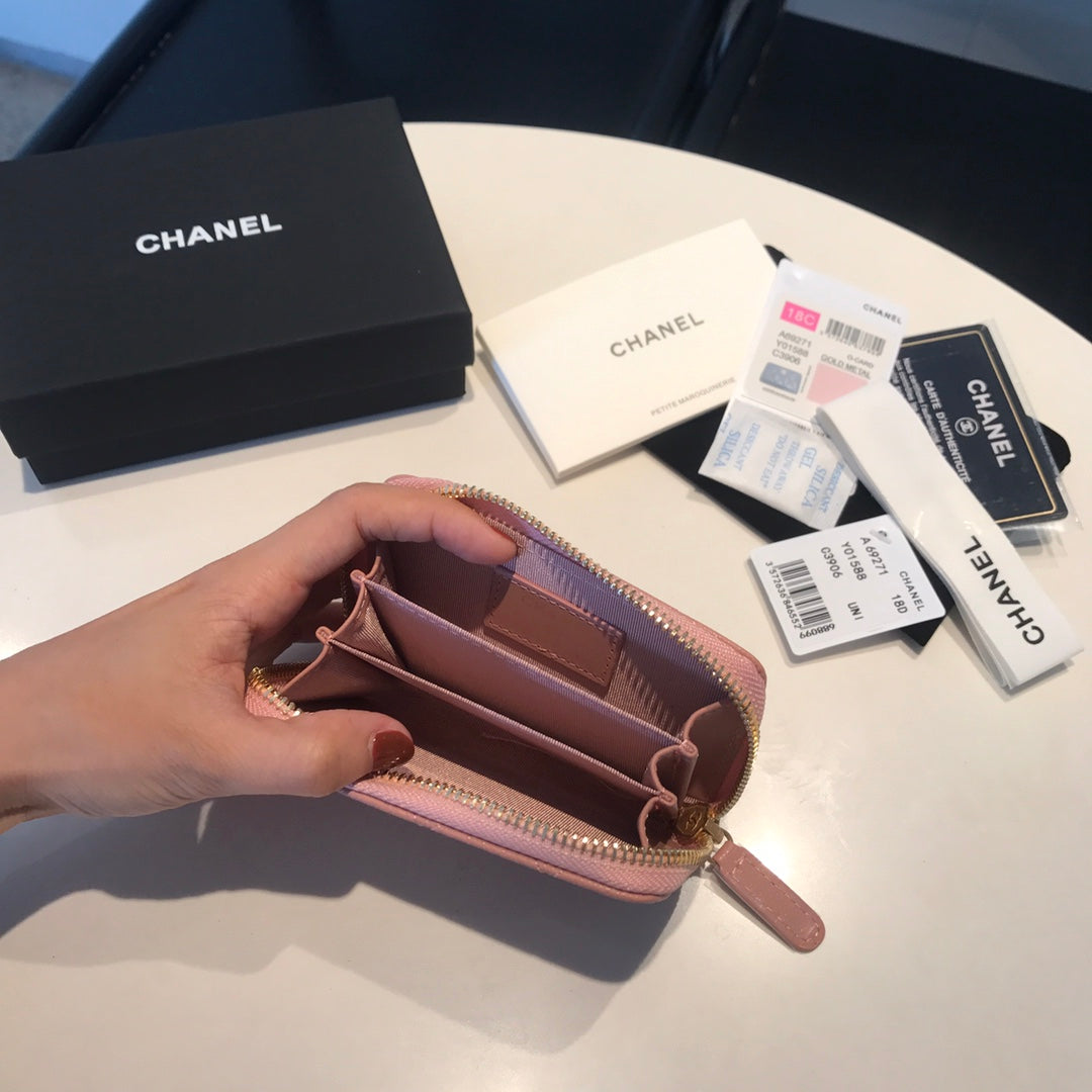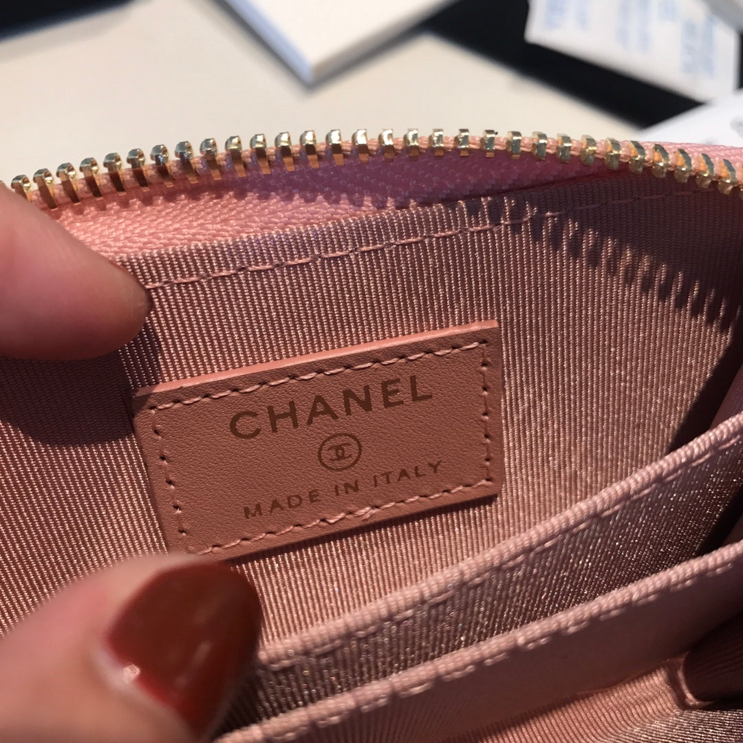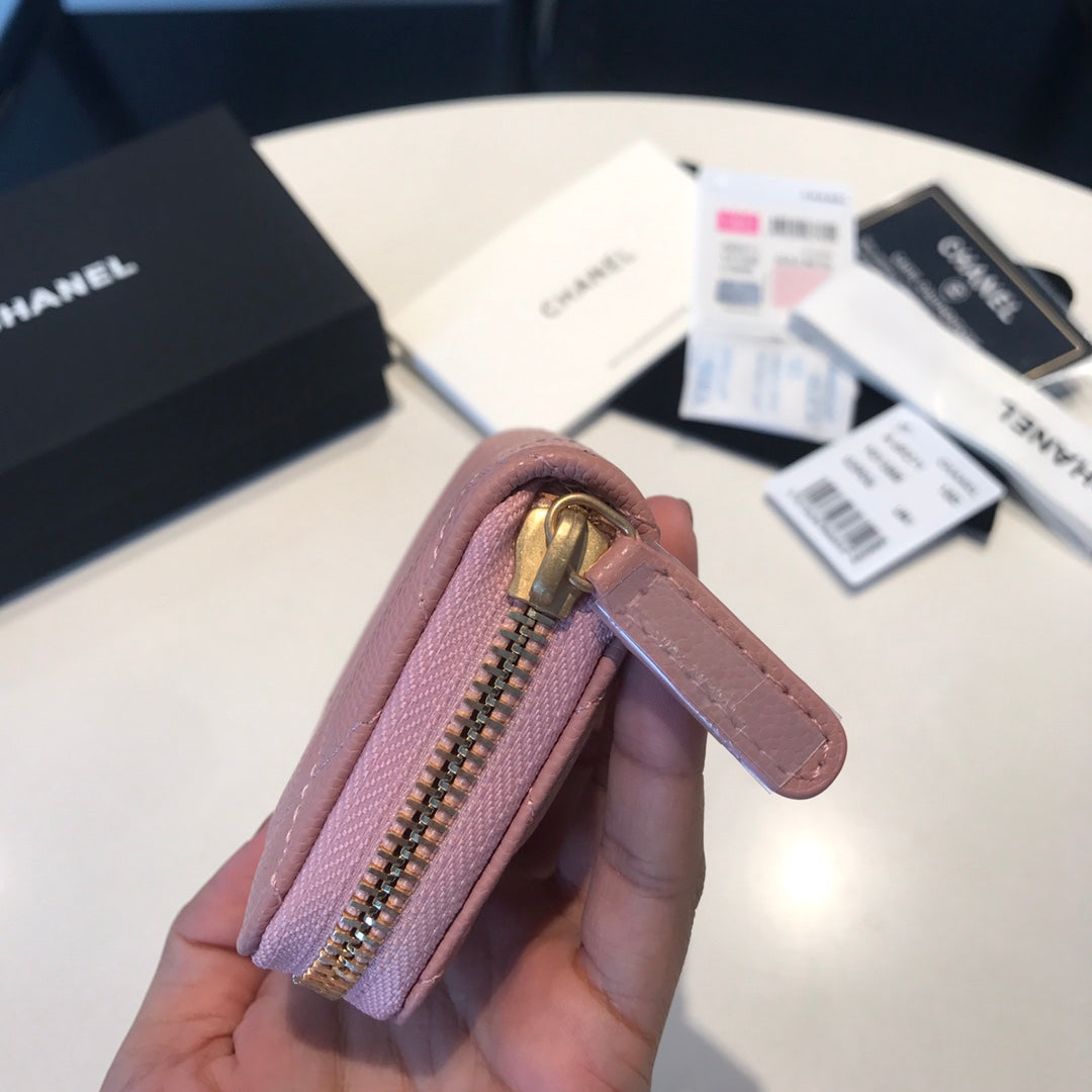 CC ZIPPED COIN BASIC PURSE 11 PEACH CALFSKIN GOLD ICON