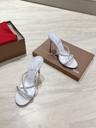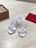 CL 25 Cross-Strap Slippers White Gloss Calf Patent Leather Rivets 314923