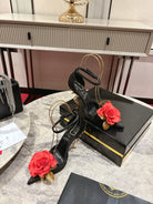 CL 25 Flower Bellarose Black Satin Fabric 346061