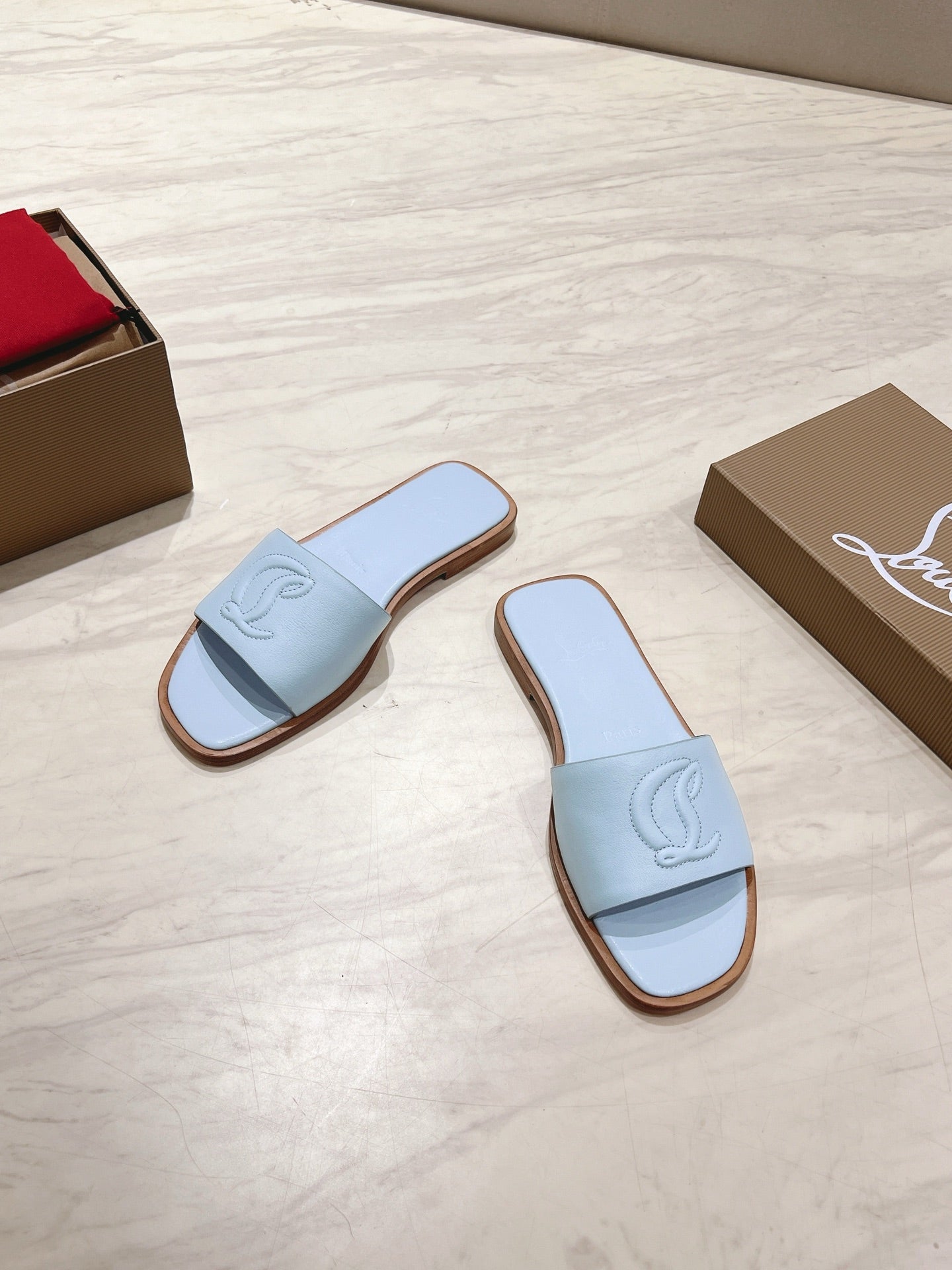 CL 25 Slippers Blue Top Layer High Gloss Calfskin 307499