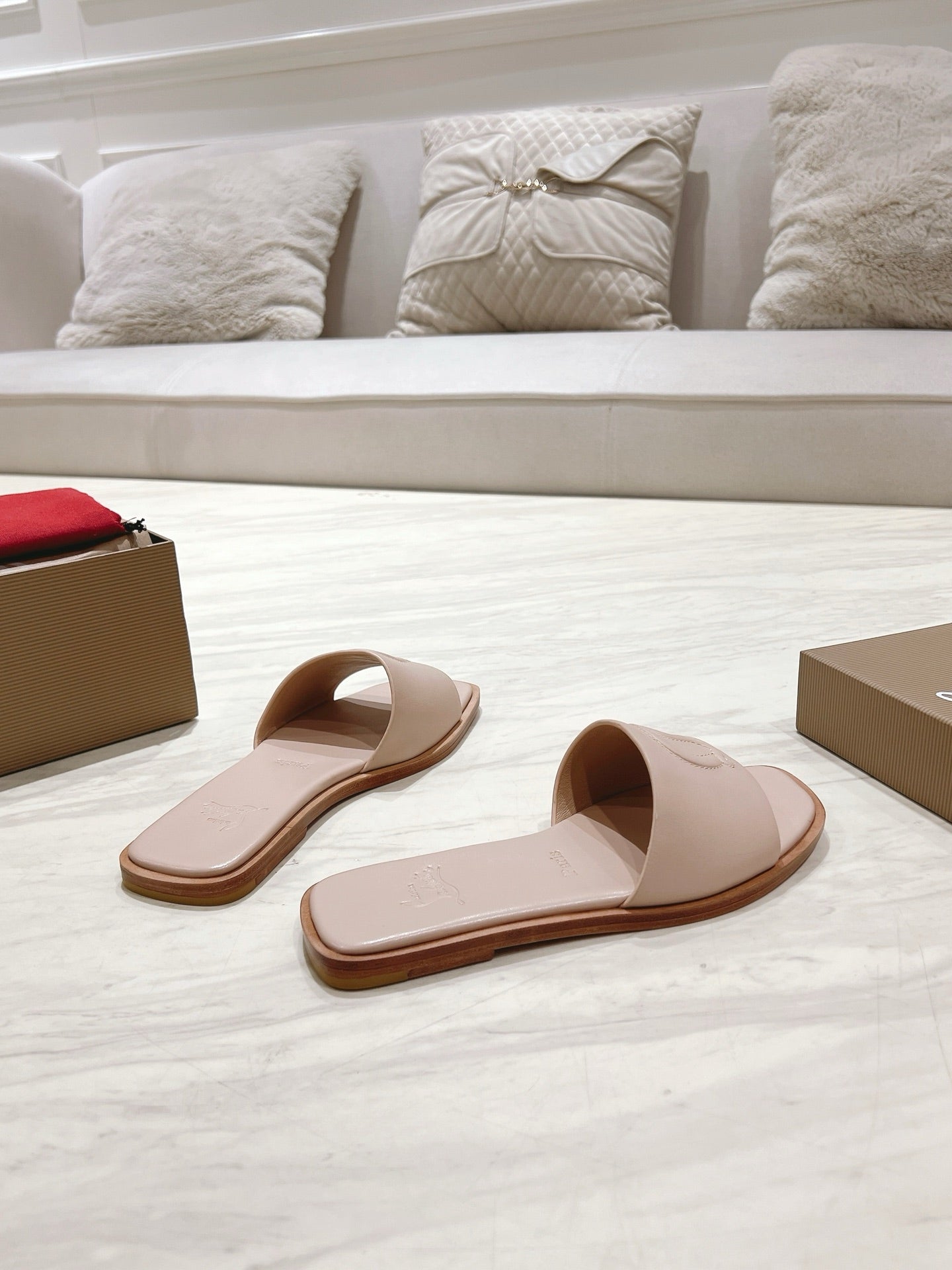 CL 25 Slippers Nude Top Layer High Gloss Calfskin 307500
