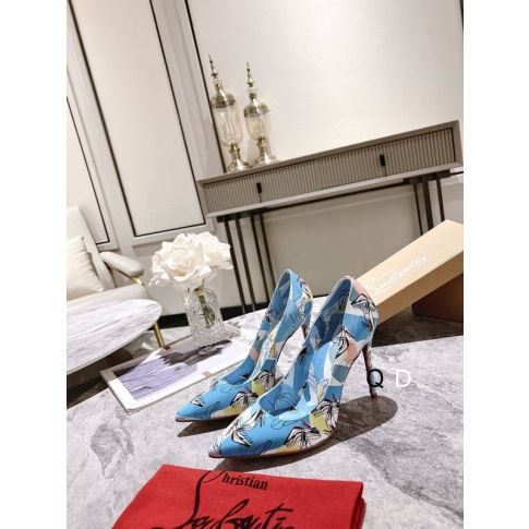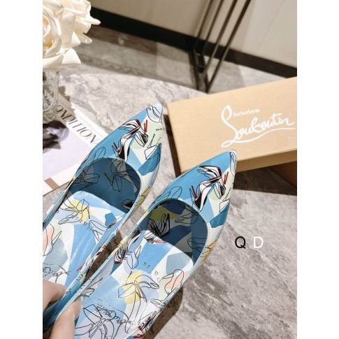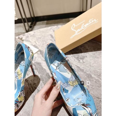 CL Kate Pumps 100mm Graphic Printed Patent Leather Blue
