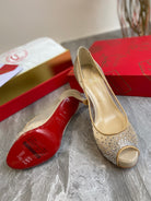 CL Very Strass Peep Toe Pumps 120mm Mesh and Leather Gold