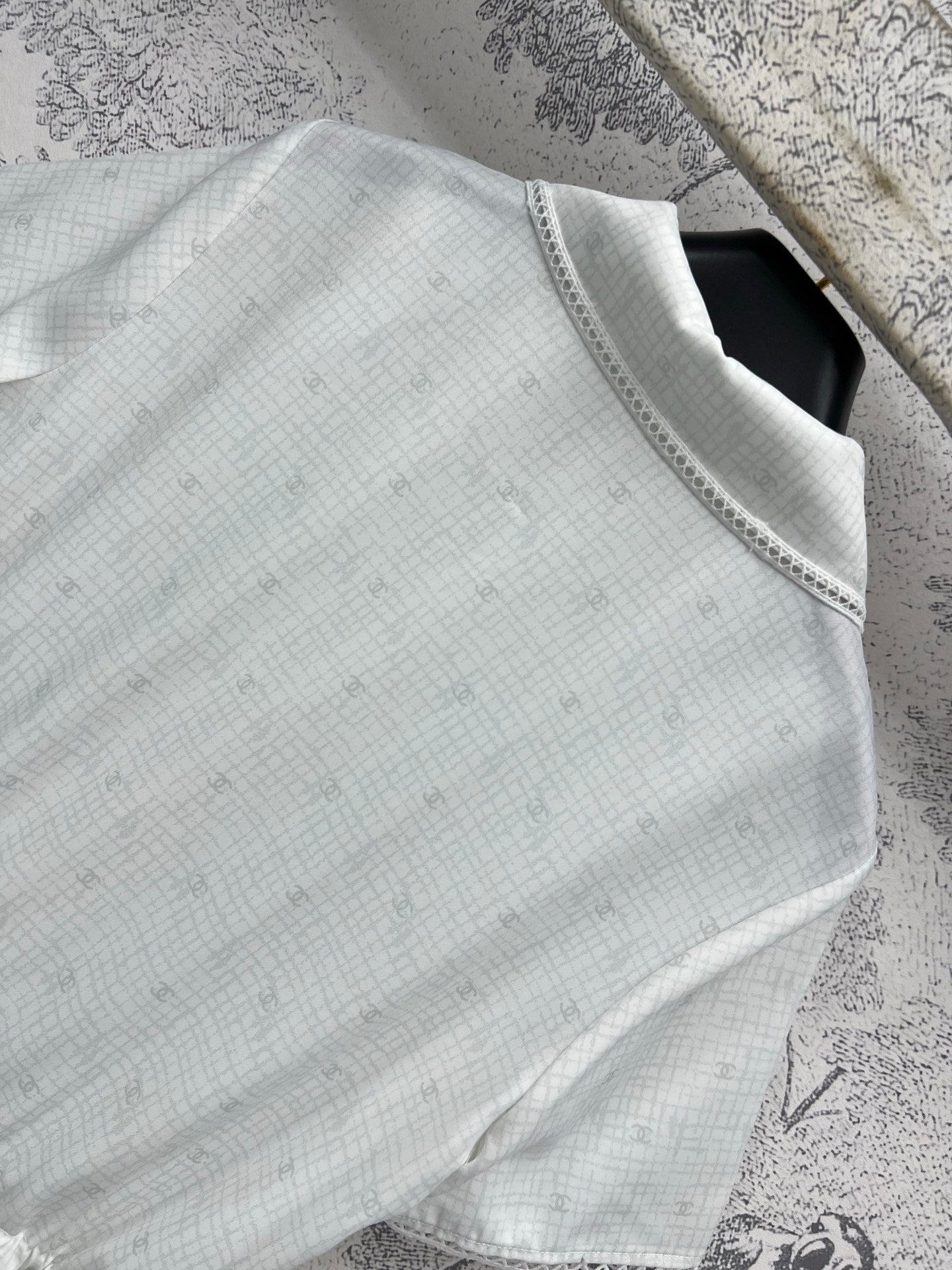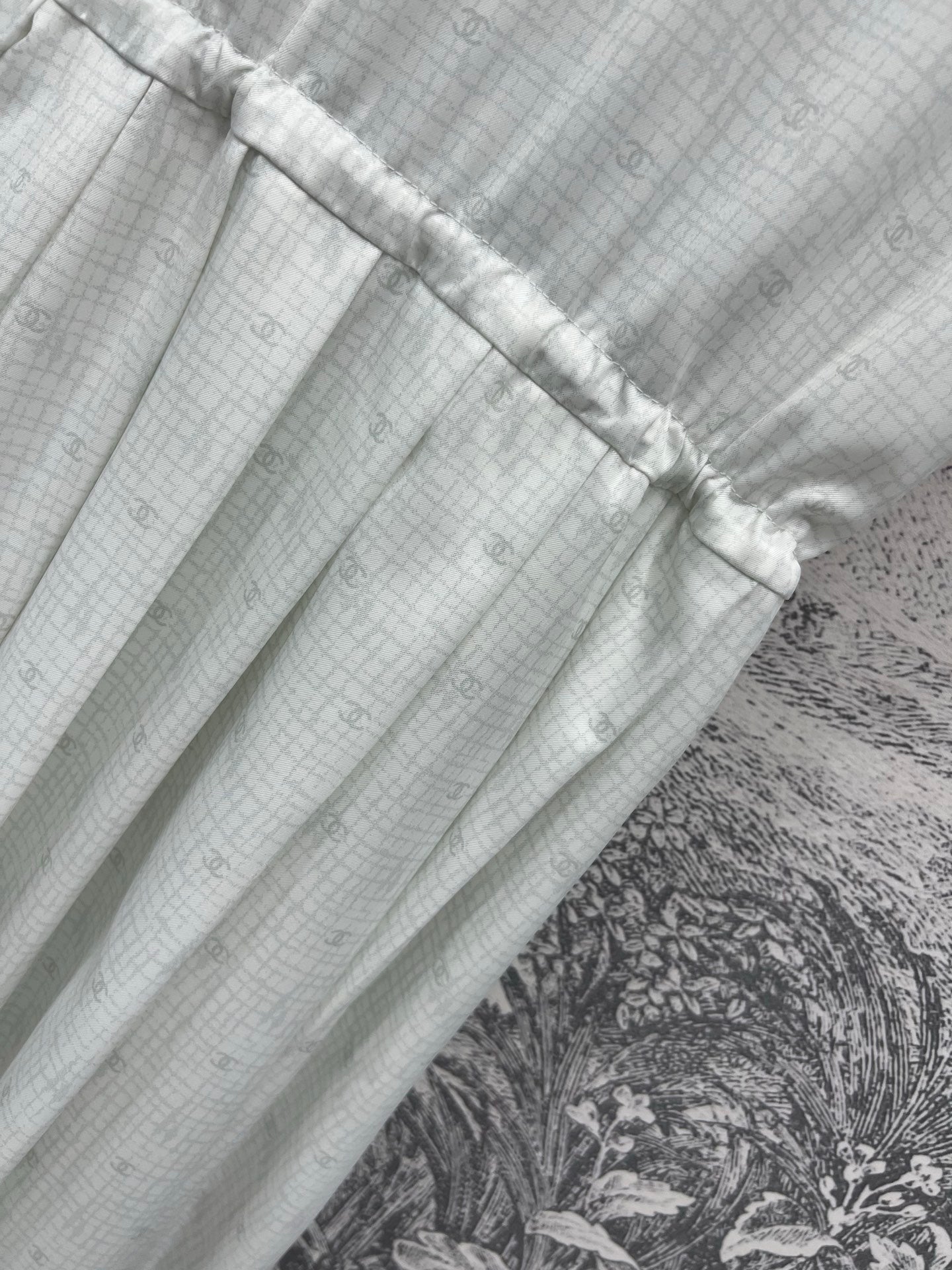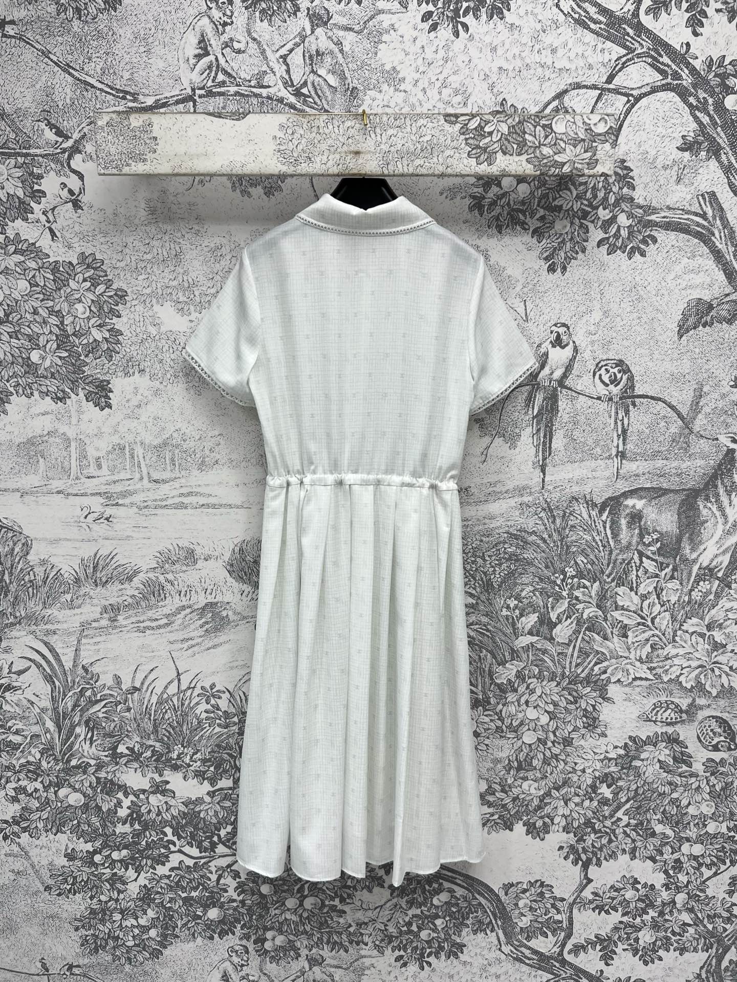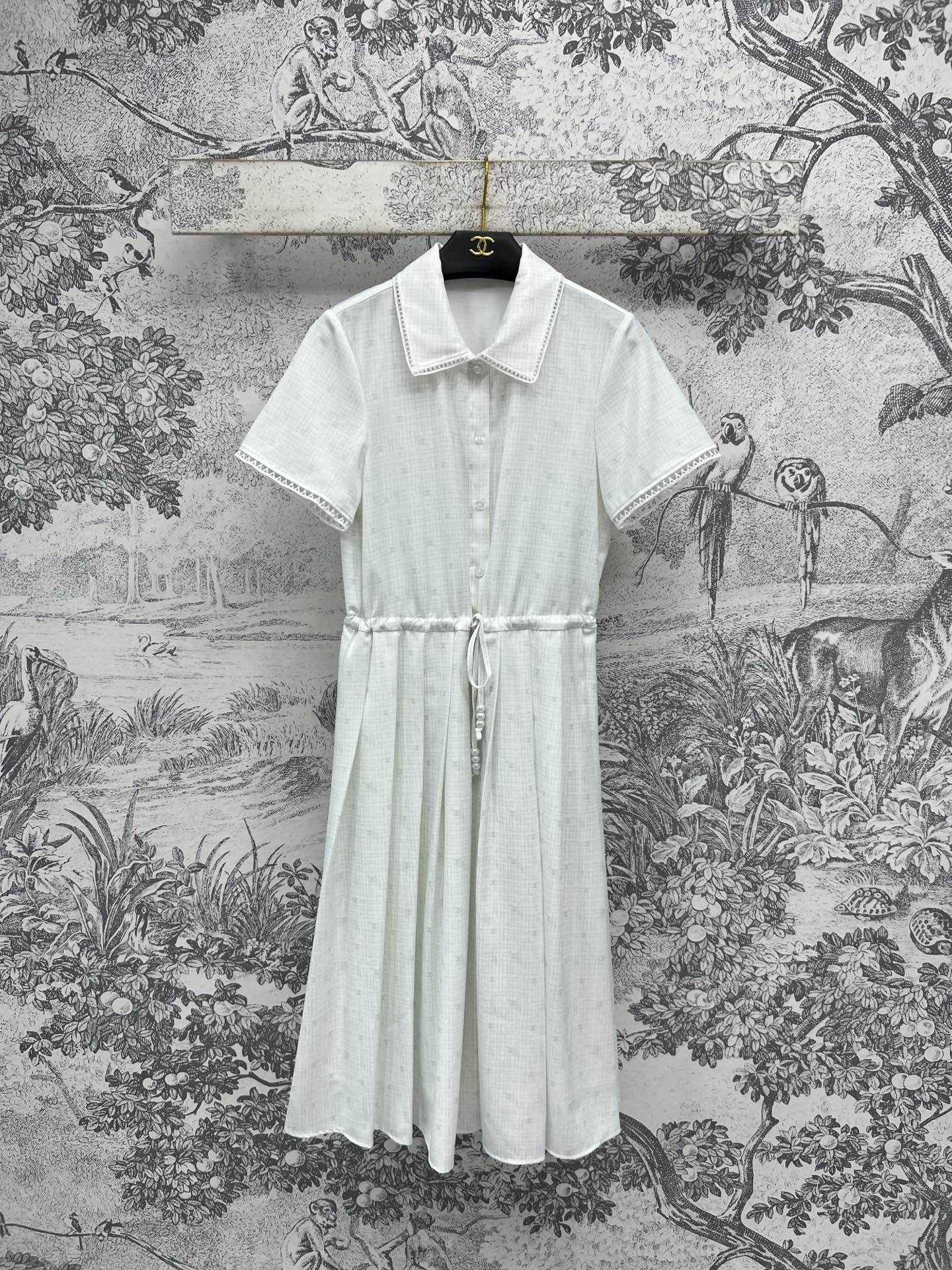 CC 25 Logo Plaid Short-sleeved Dress White Polyester Fiber