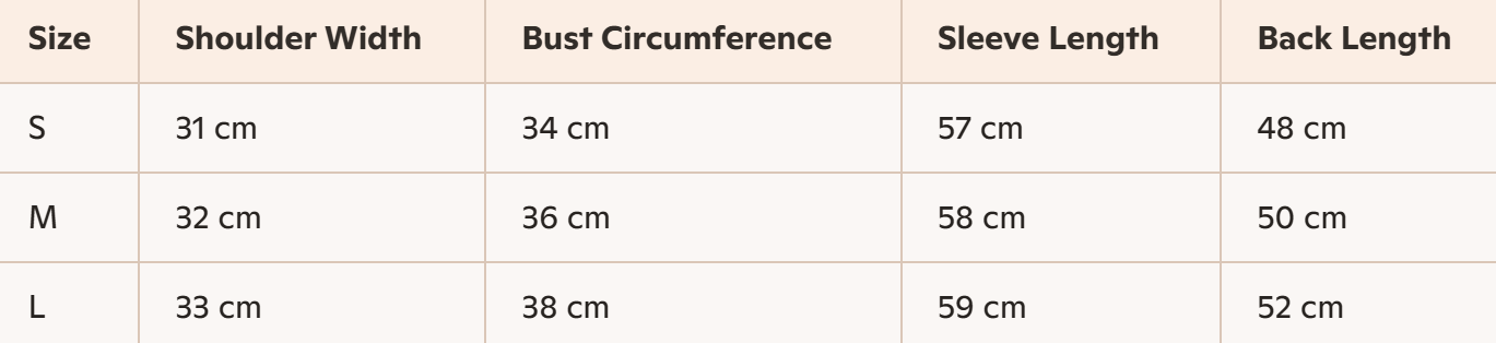 - Size : S, M, L