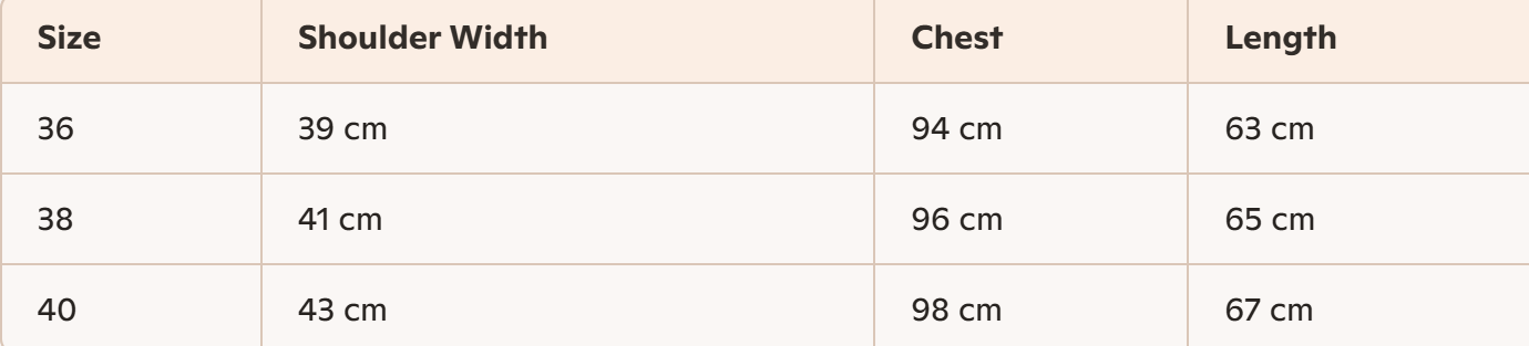 - Size : 36, 38, 40