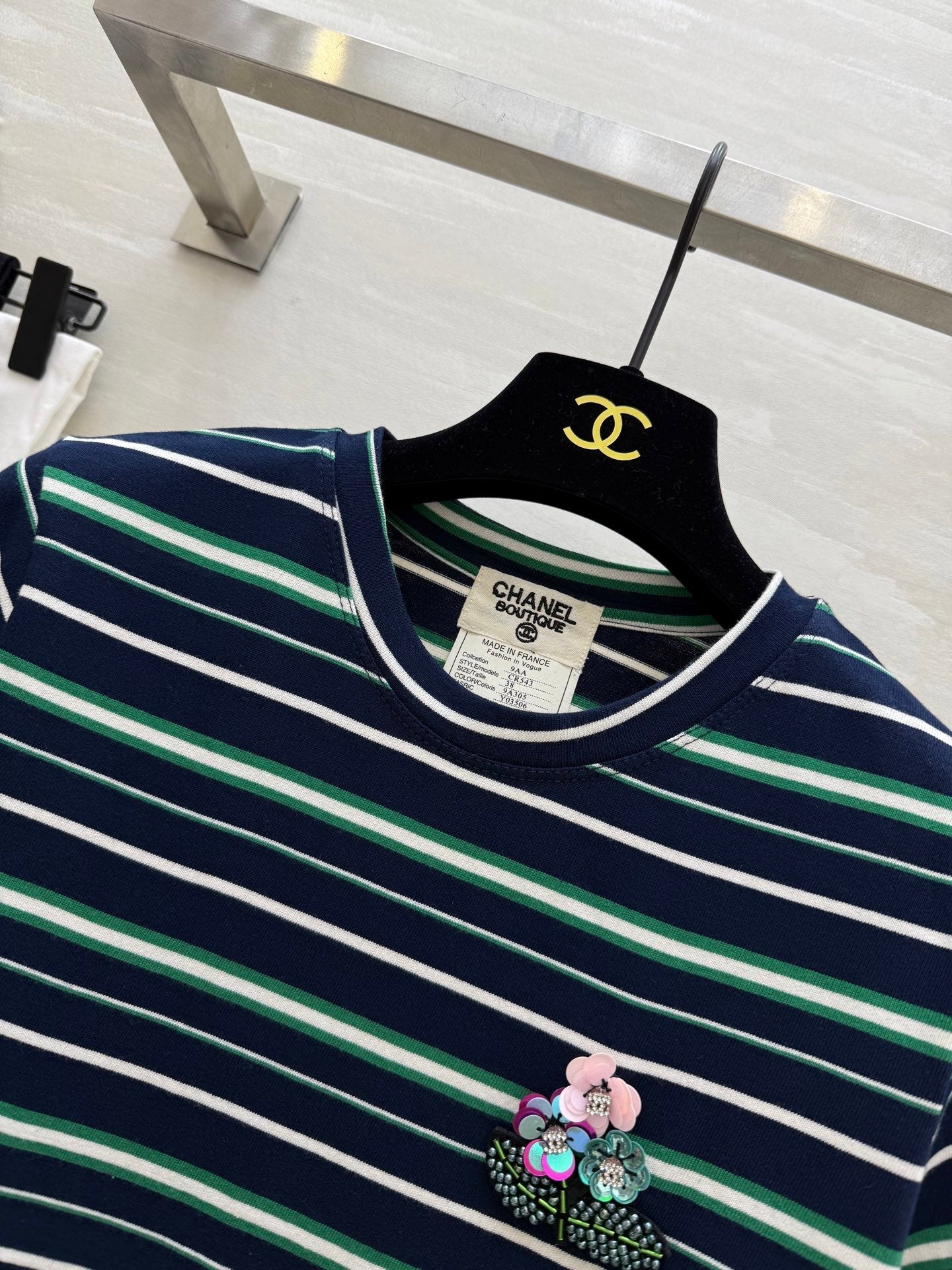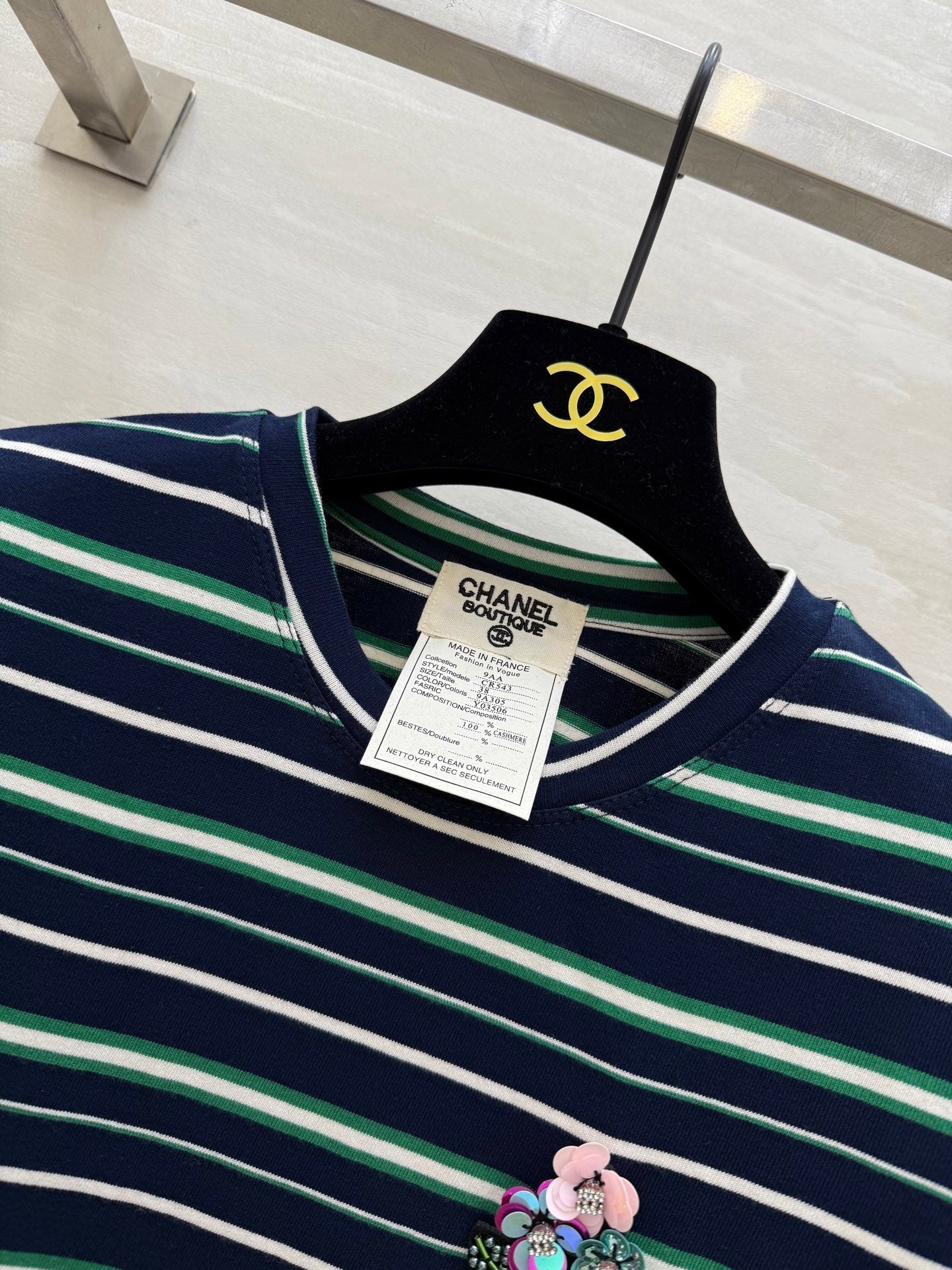 CC Beaded Flowers Shirt Dark Blue Cotton