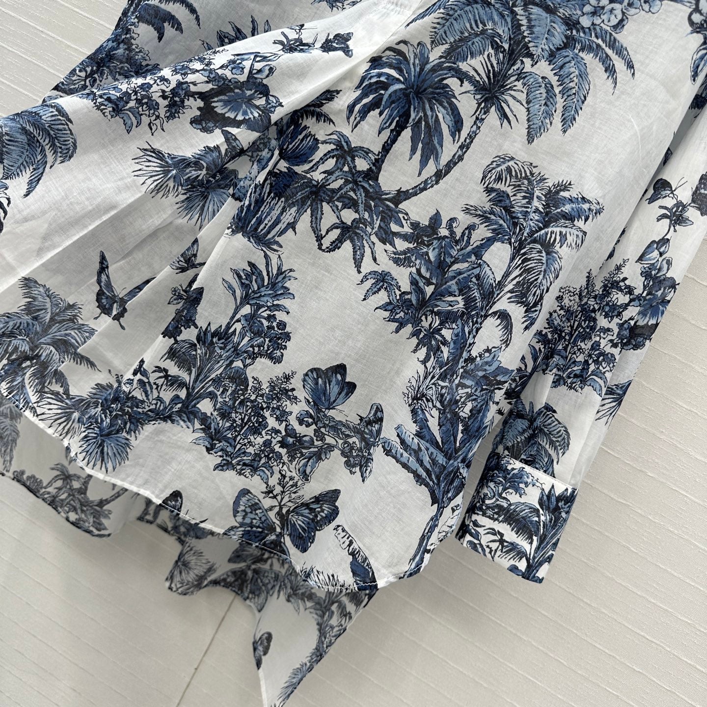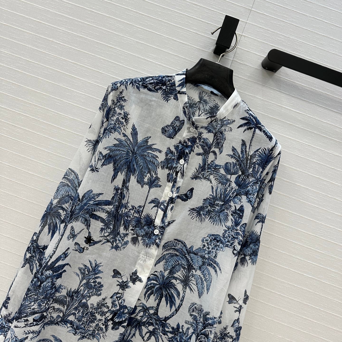 CD 25 Butterfly Coconut Print Shirt White Blue Cotton