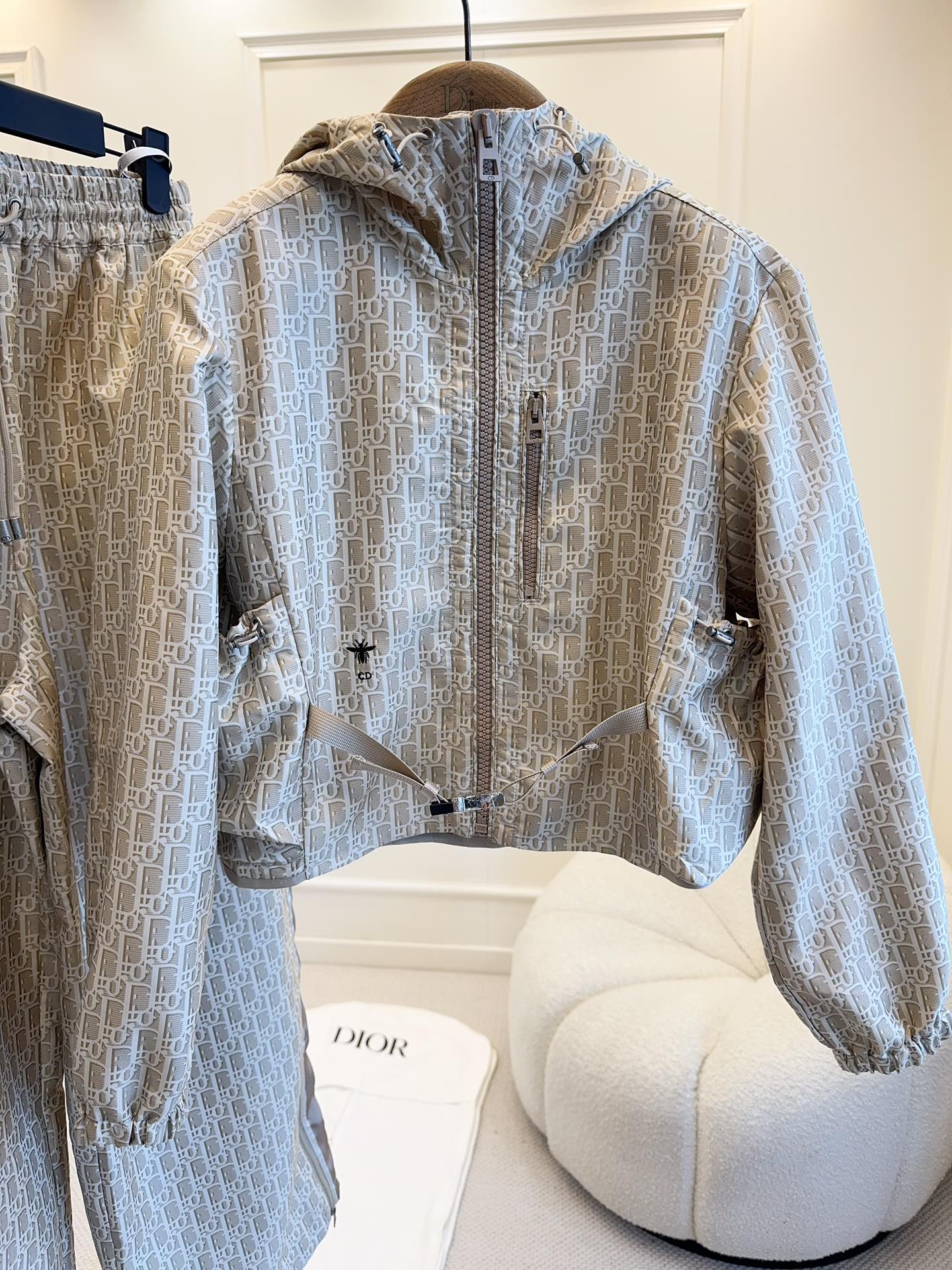 CD 25 Monogram Hoodie Light Beige Polyester