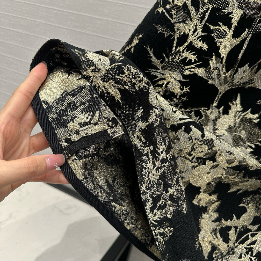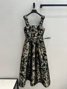CD 25 Print Dress Black Gold Jacquard fabric
