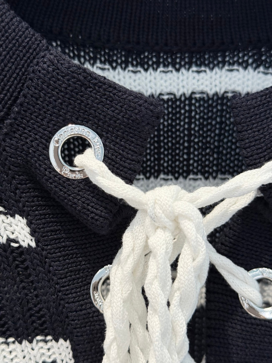 CD 25 Striped Knitted Long-sleeved Dress Black Cotton