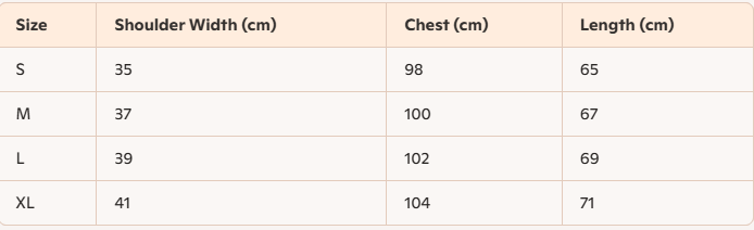 - For more information, please see the size guide below