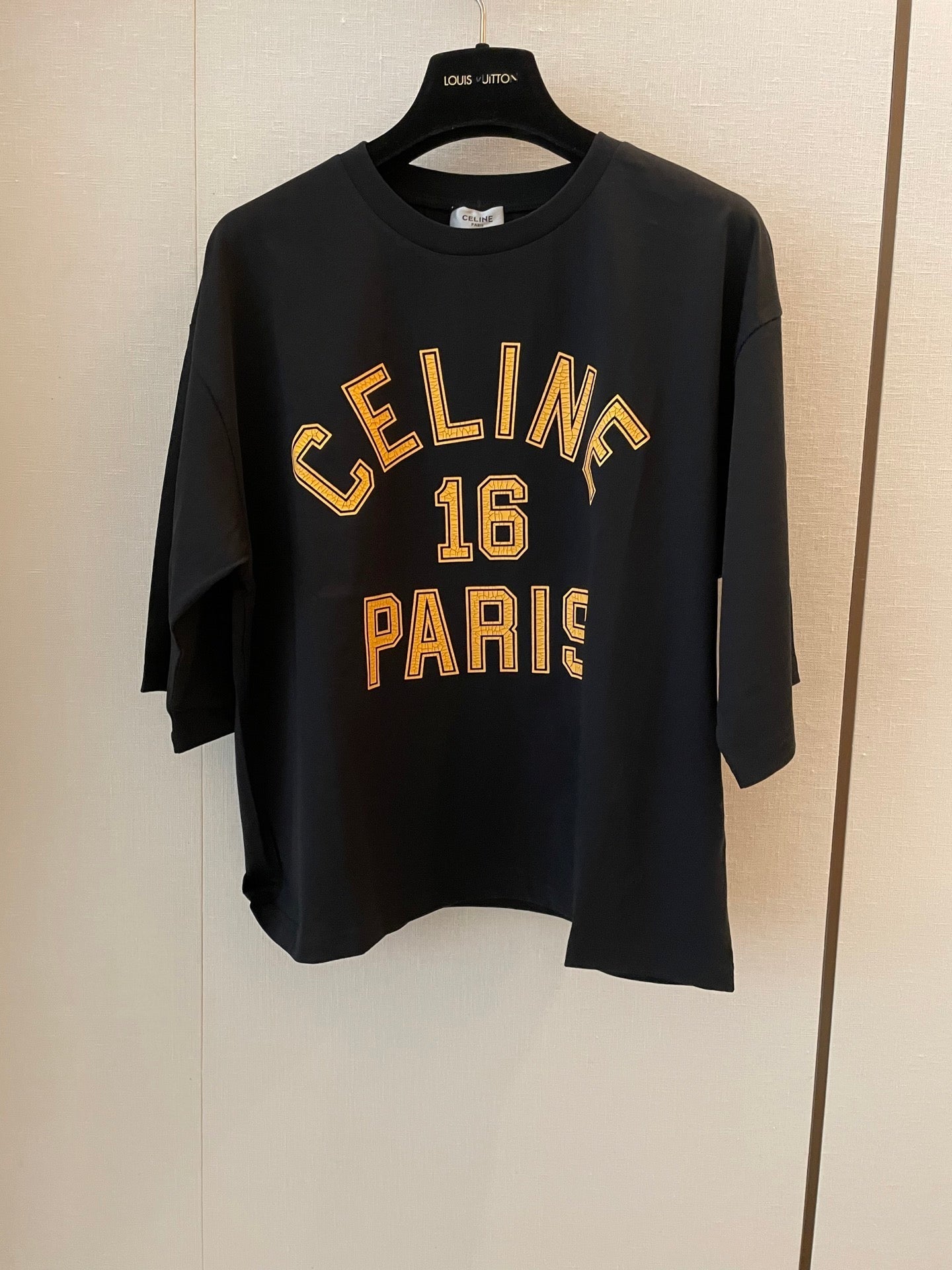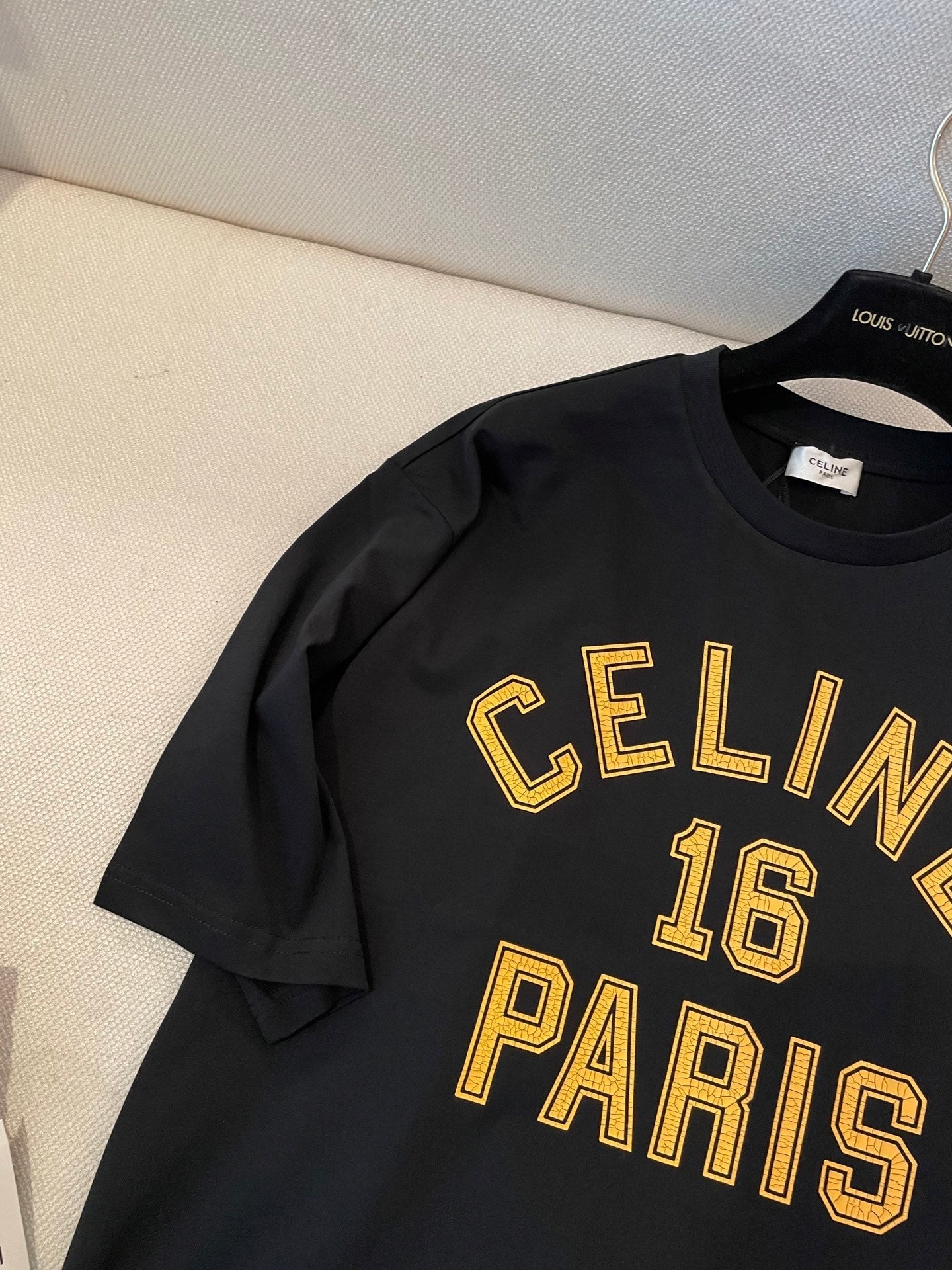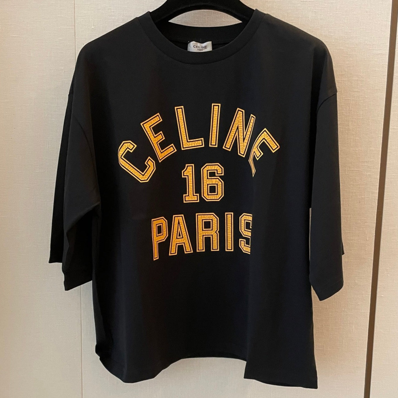 Celine 25 "CELINE 16 PARIS" T-shirt Black mix Yellow Cotton