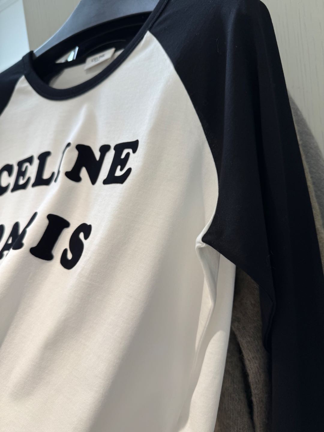Celine 25 CELINE PARIS Long-sleeve T-shirt White mix Black Cotton