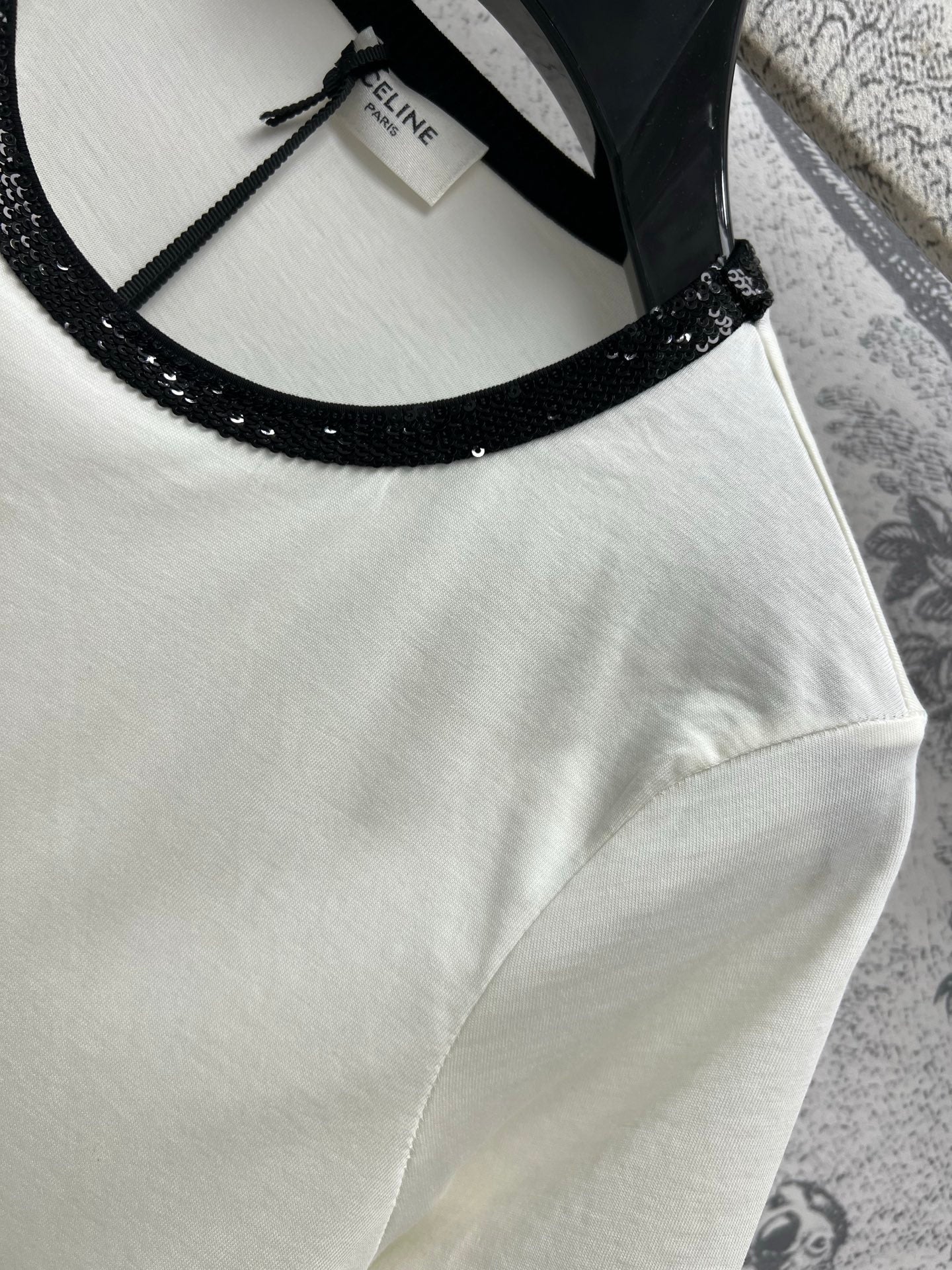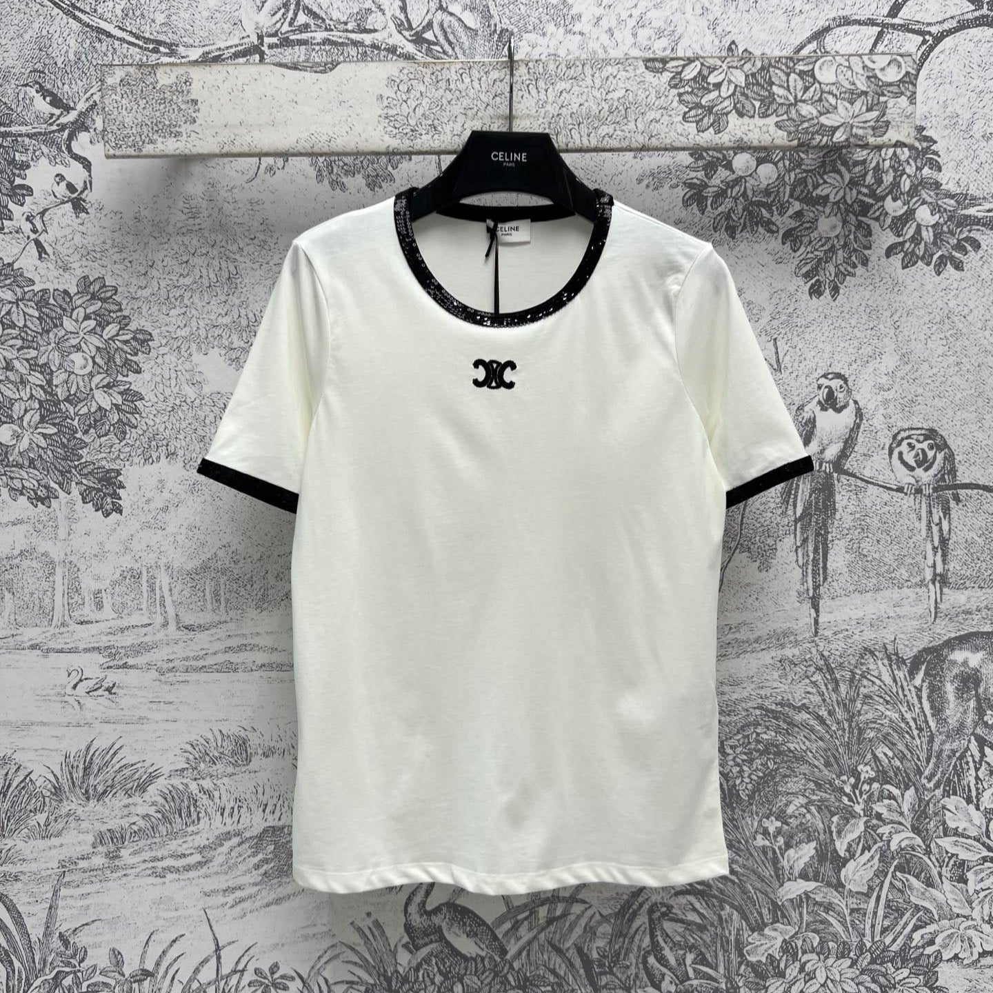 Celine 25 Embroidered Logo T-shirt White mix Black Cotton Polyester