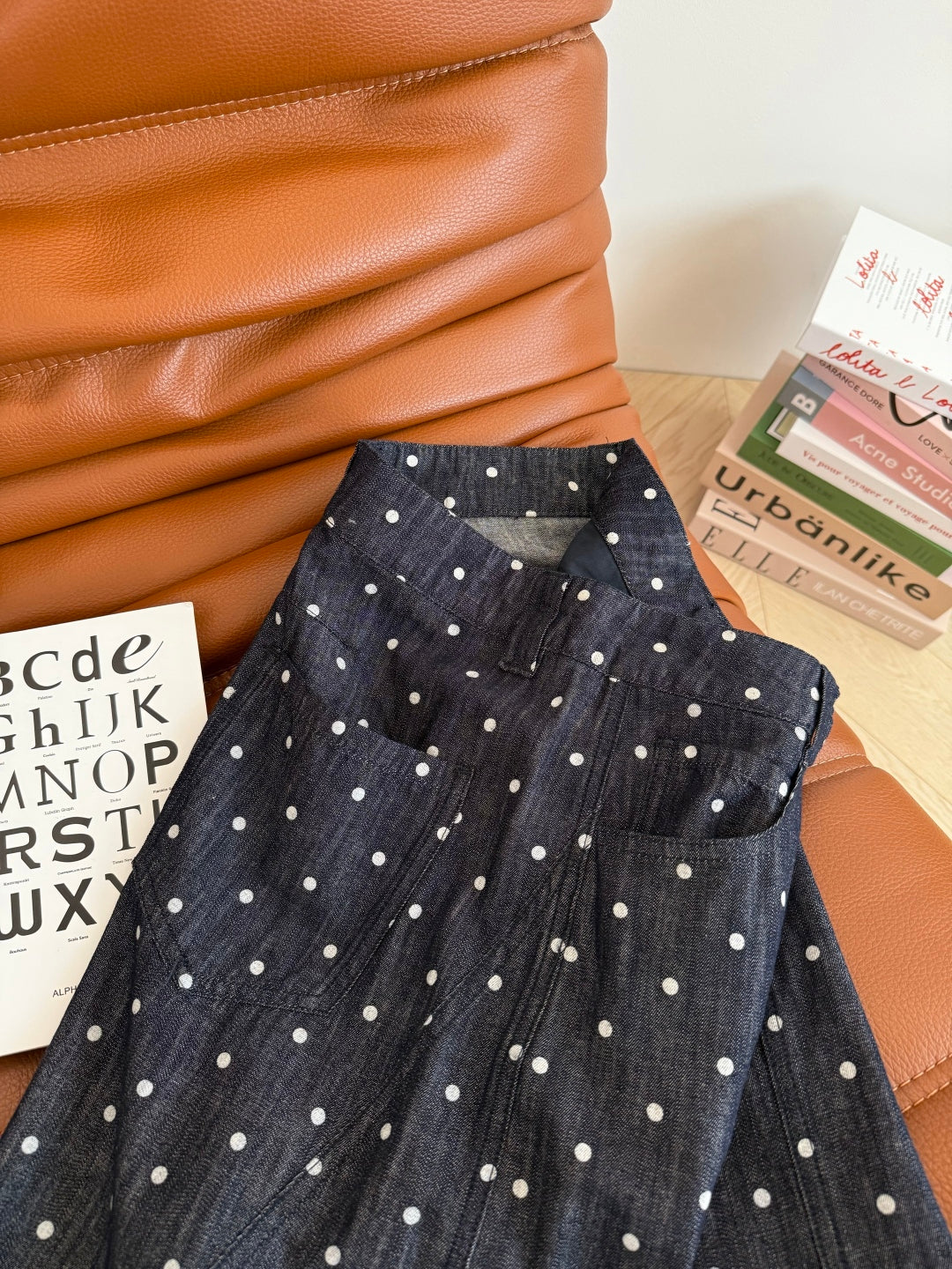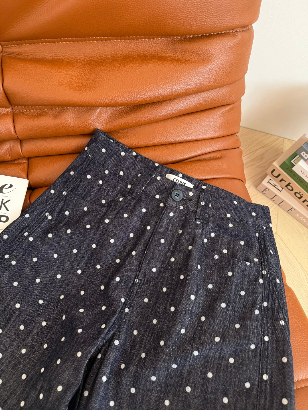Celine 25 Polka-dot Pants Navy Blue Cotton