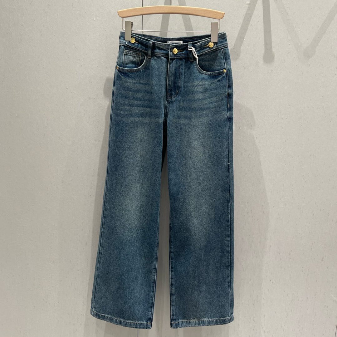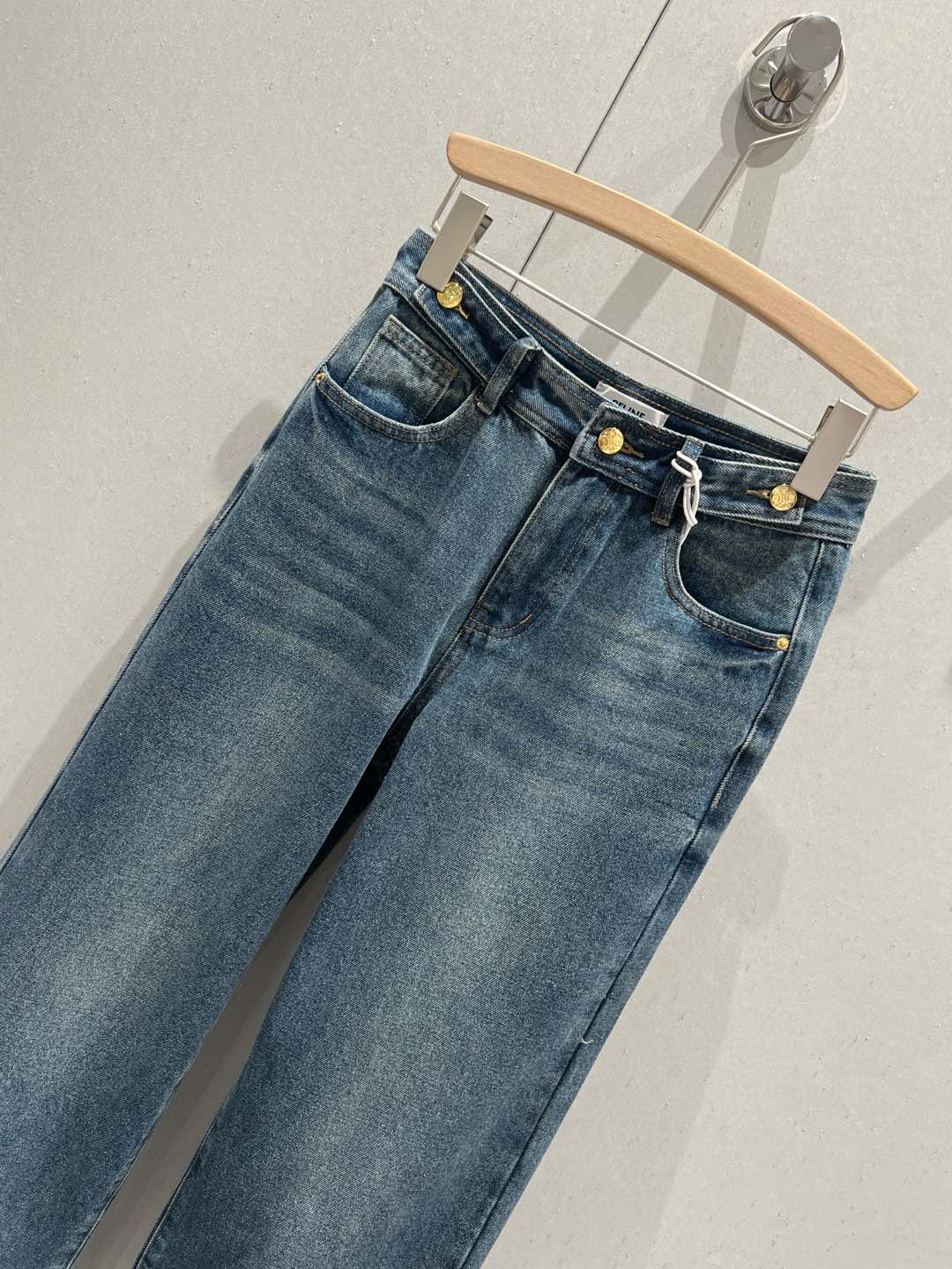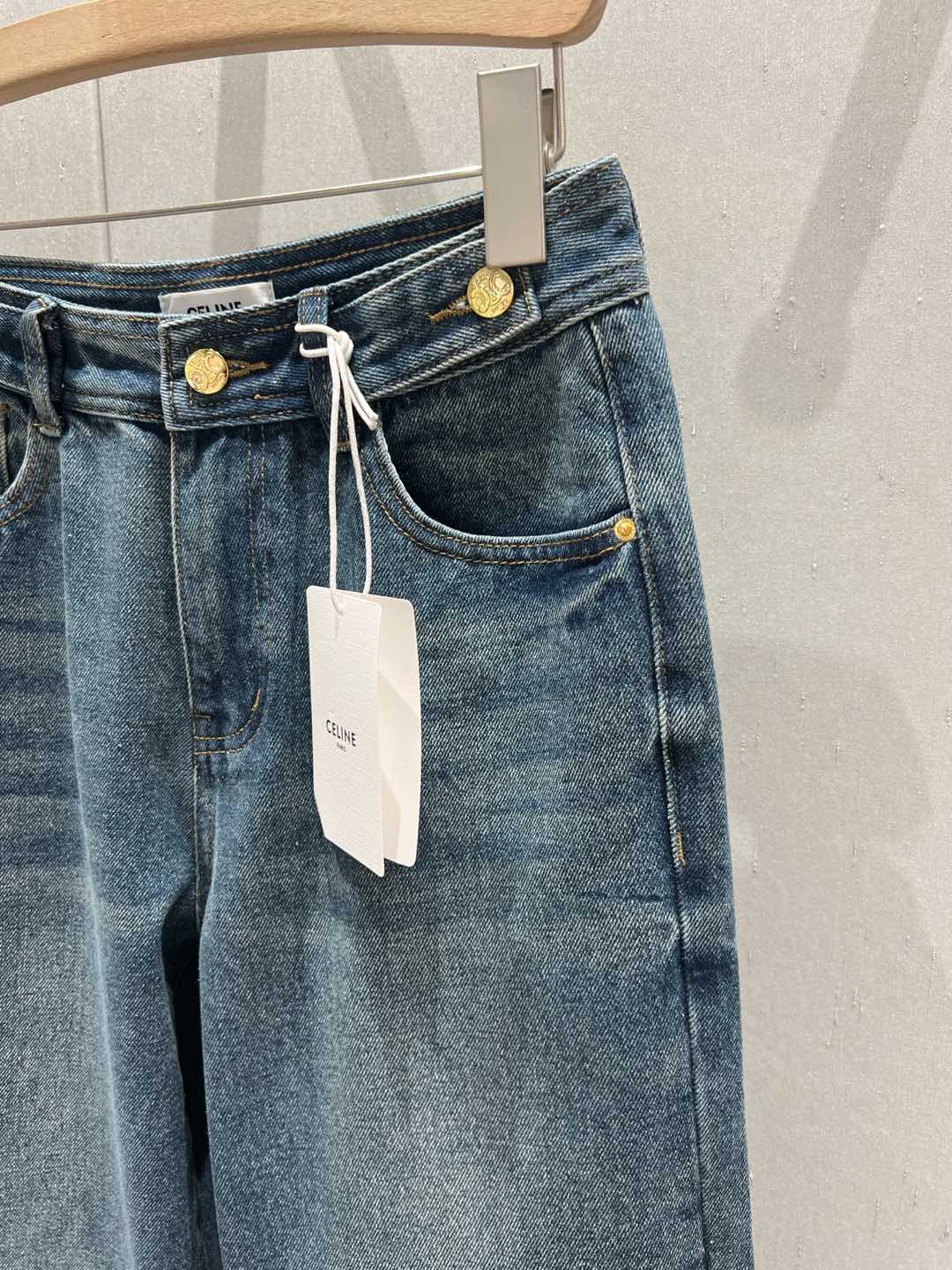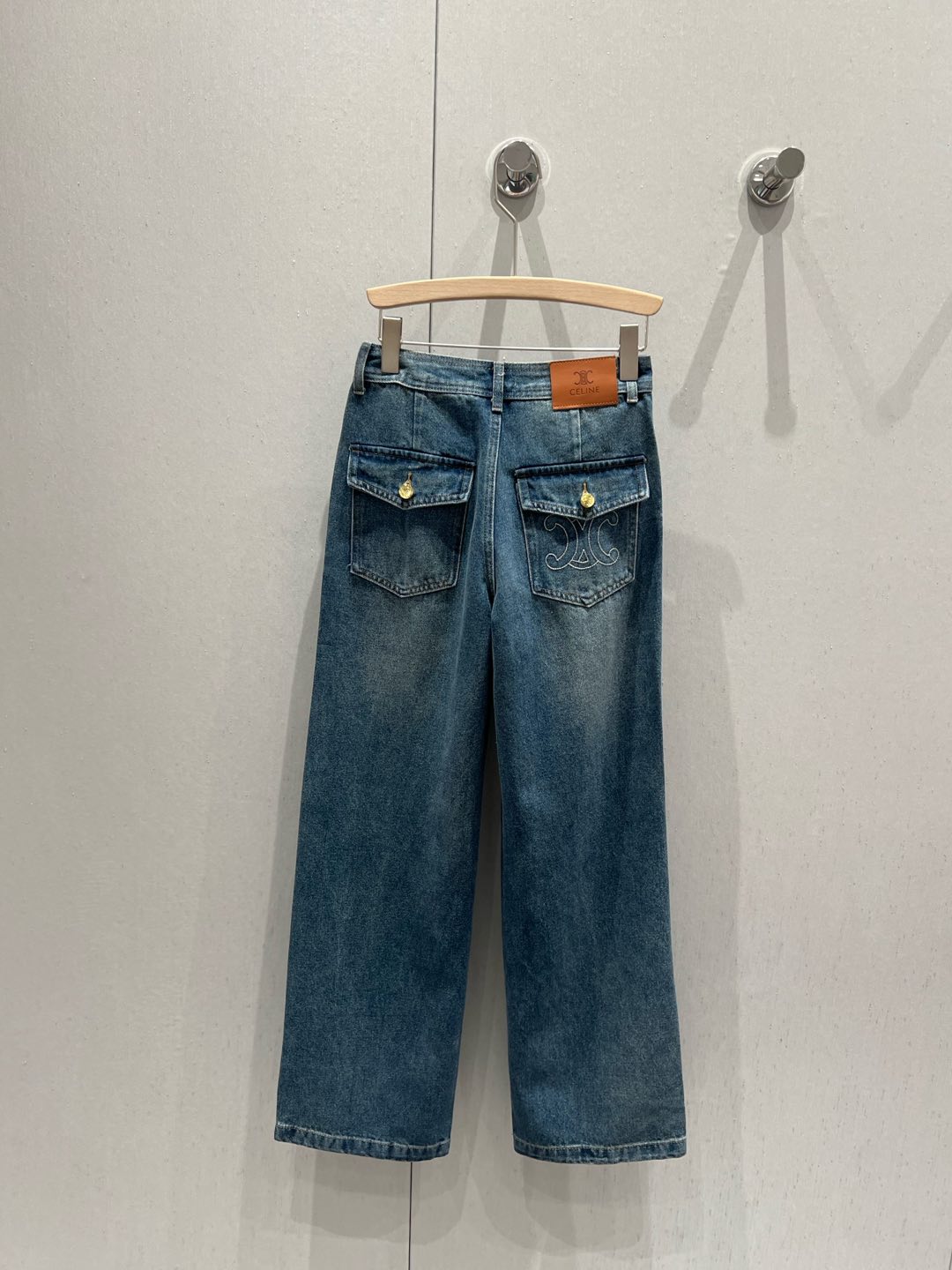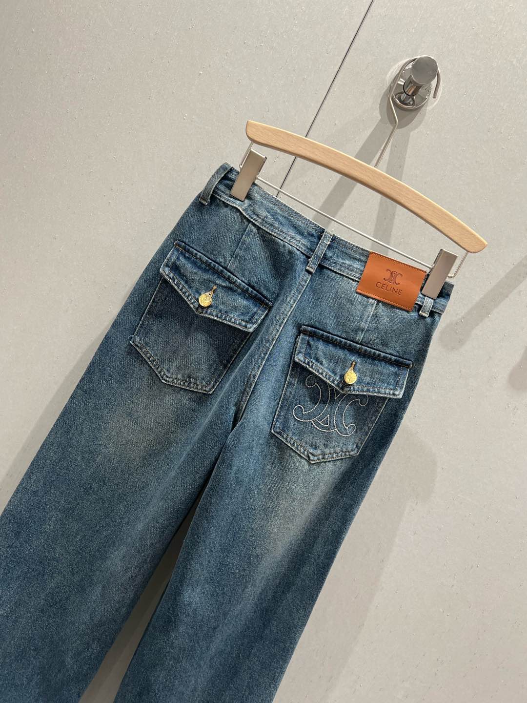 Celine Back Pocket Embroidery Cover Straight Jeans Blue Cotton 209716
