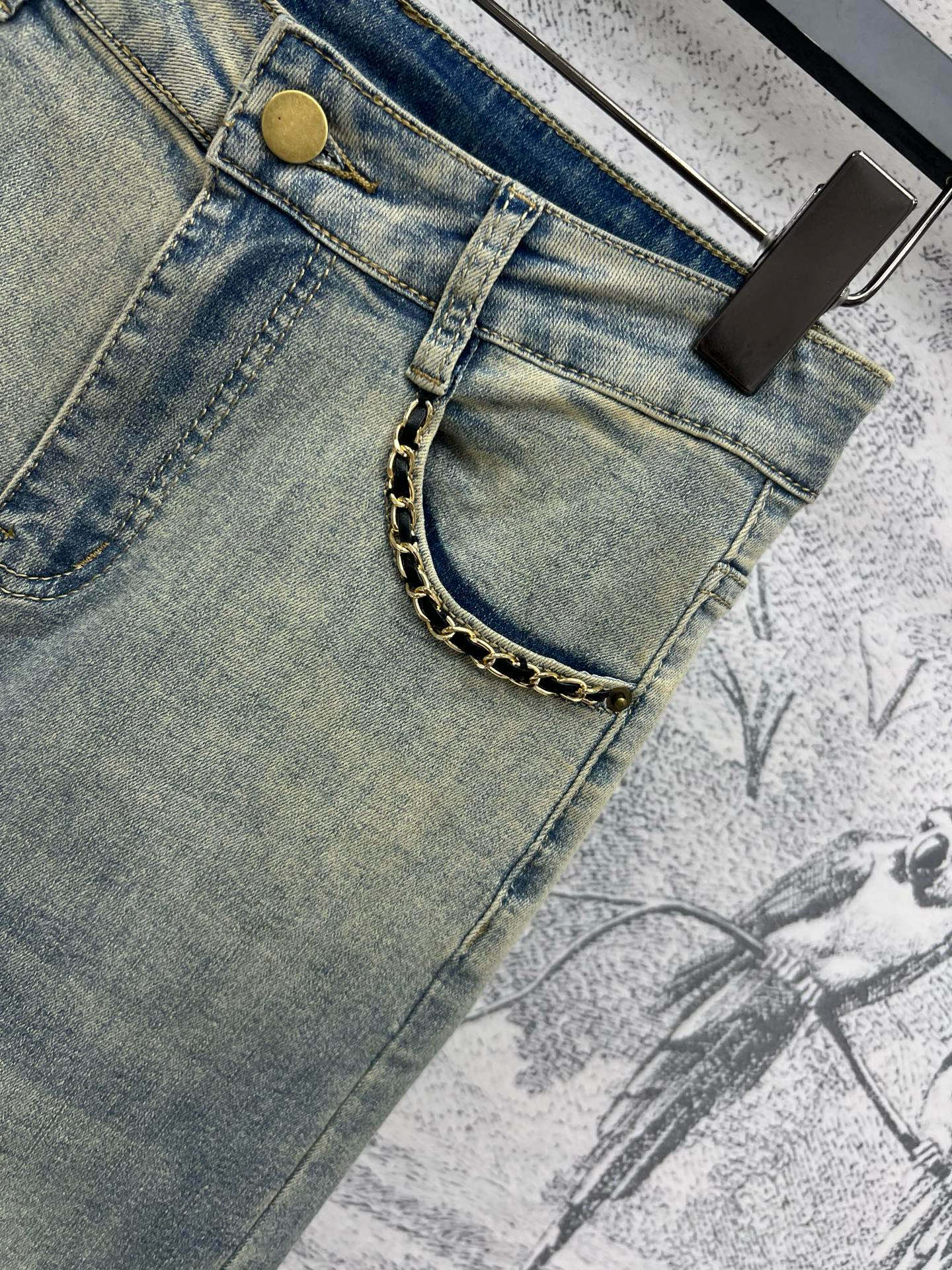 Joewe 25 Chain-decorated Jeans Blue Cotton Fabric