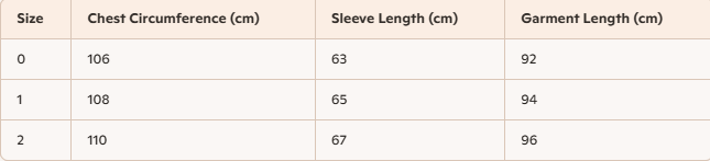 - For more information, please see the size guide below
